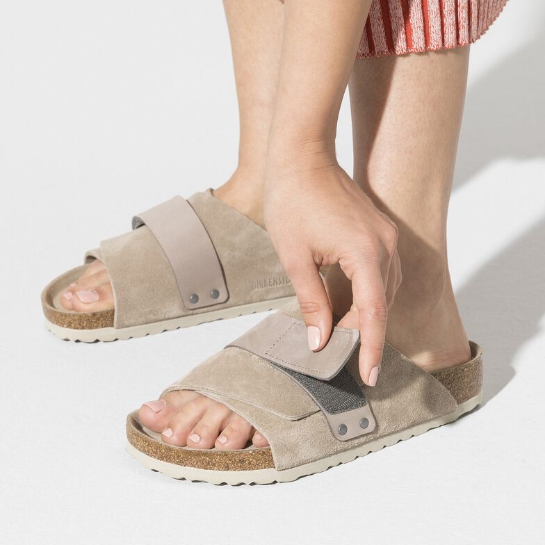 定番Zürich/チューリッヒをイメージしてデザインされたこのカジュアルなビルケンシュトック Kyoto/キョウトは、コンパクトなデザインと自由にフィット感を調整できる留め金が魅力の一足です。安心のホールド感、そして二つのリベットが添えるアクセントをお楽しみください。フォーム層を追加したソフトフットベッドで、一日中足が疲れない、快適な履き心地を満喫してください。アッパーにはもう一枚の肌のように足を優しく包み込む特に柔らかいベロアレザーと高級ヌバックレザーを組み合わせています。