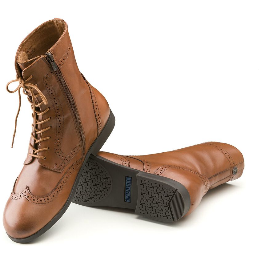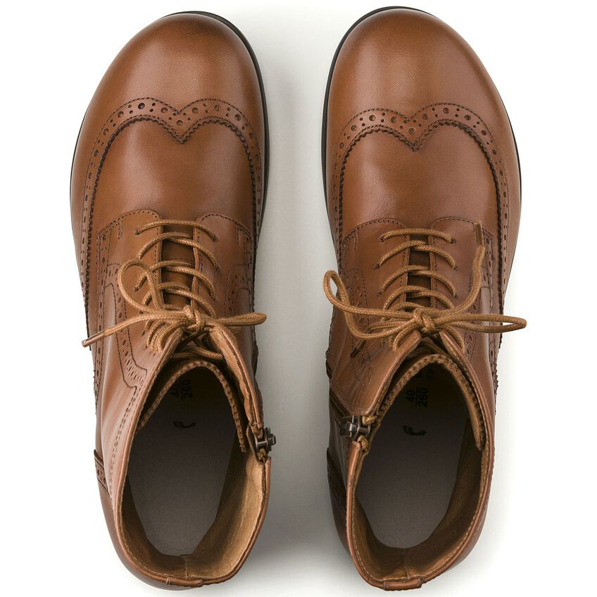 ビルケンシュトック のブーツLaramie/ララミーは、ファッショニスタのためのマストアイテムです。 このレースアップブーツは、ヴィンテージ風に仕上げられた上質なナチュラルレザーを使用しています。気品漂うレザーの質感が、ファッショナブルでありながら伝統が感じられる、洗練されたブリティッシュスタイルを生み出しています。トゥ部分に翼にような切り替えを施したウイングチップ、繊細なパンチング装飾のブローグスタイル、足のラインに沿ったシルエットが、様々なコーディネートを上品でスタイリッシュに仕上げます。