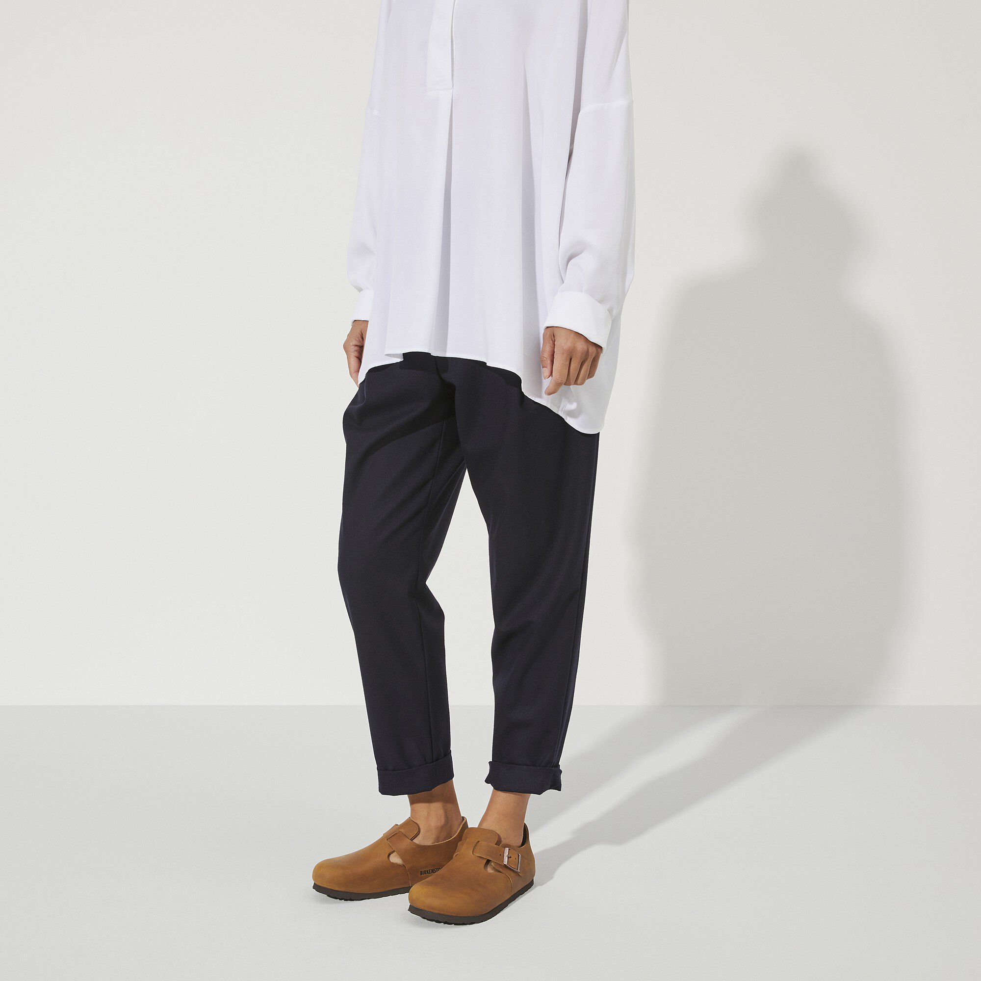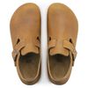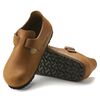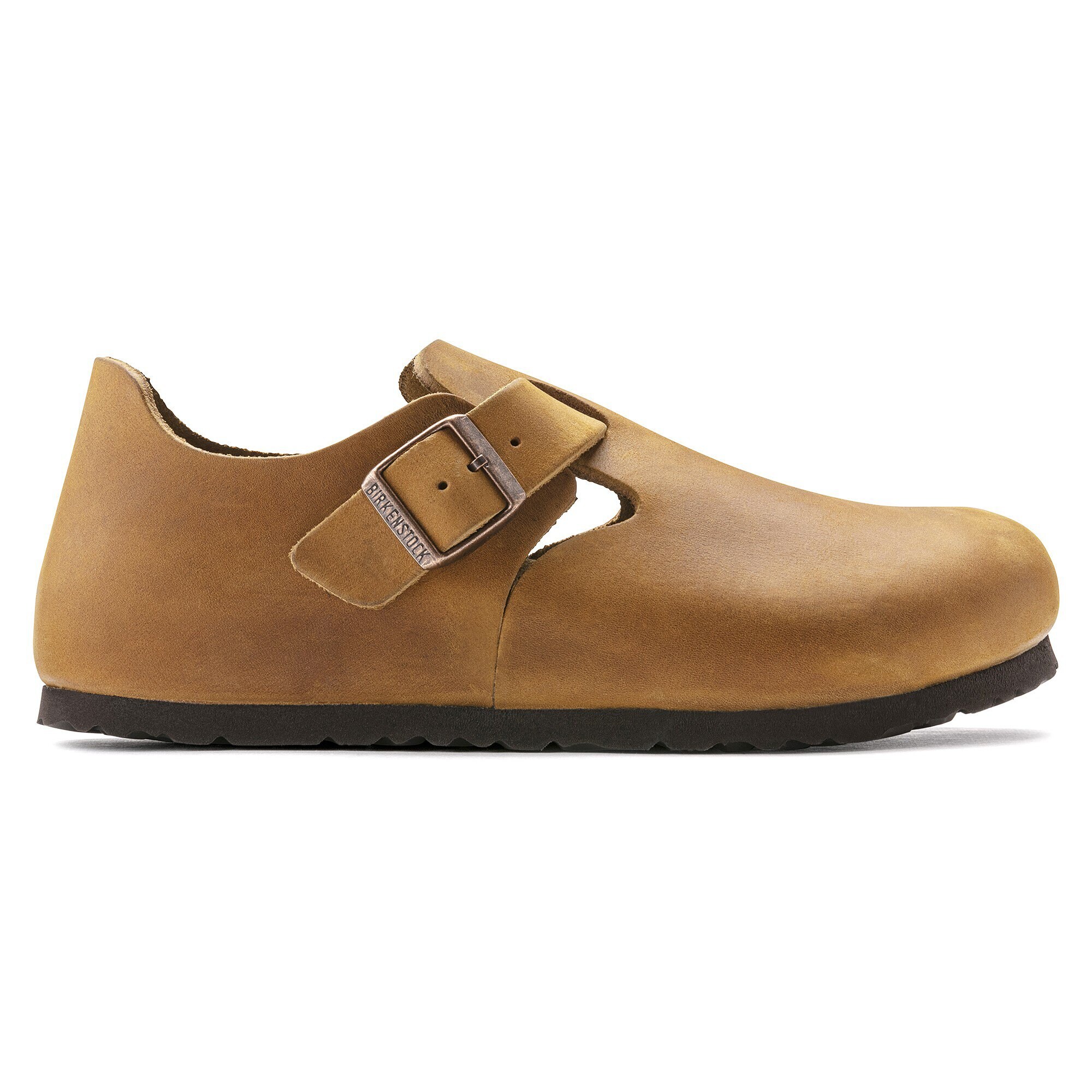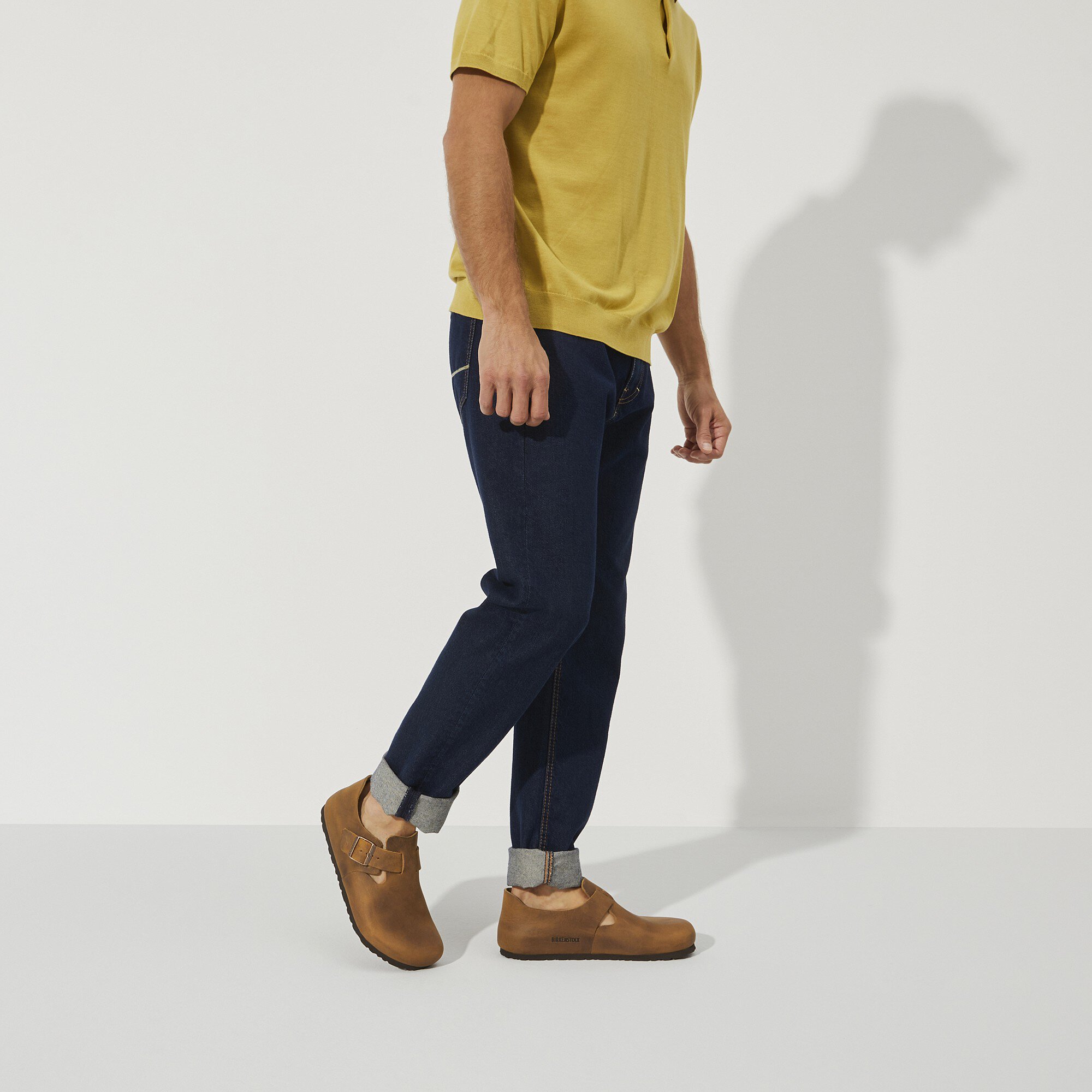 ビルケンシュトックの定番Boston/ボストンのかかとが覆われたモデル・London。かかと部分が少し引き上げられたデザインのLondonには上質なオイルドレザーが使用されています。裁ち端の風合いを生かしたライニング無しのこのデザインはナチュラルなアピアランスを強調しています。