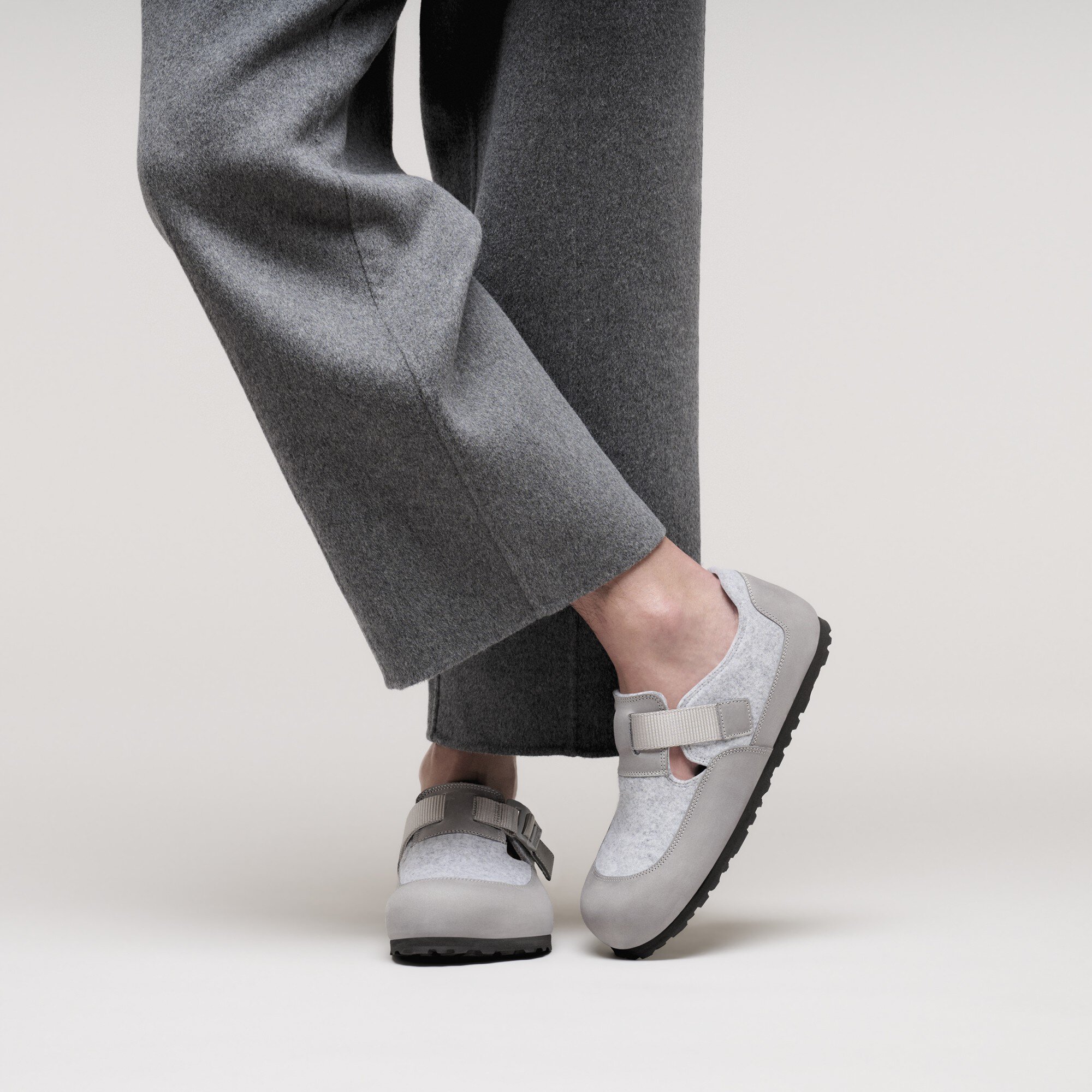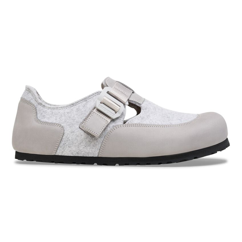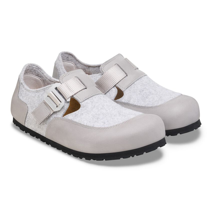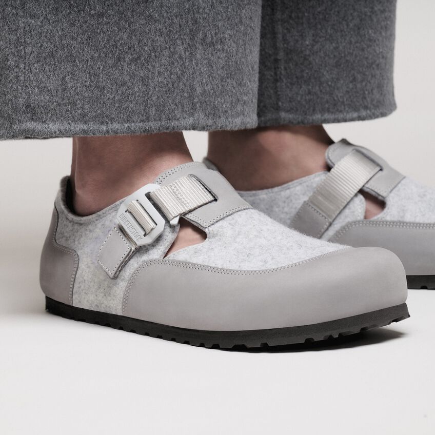 BIRKENSTOCK London Novaは定番Londonに未来派のタッチを添えた一足です。革新的なGフックバックルを自由自在に調整し、完璧なフィット感をお楽しみください。ふたつのコンポーネントを組み合わせたソールが安定した、コンフォートたっぷりの歩行を約束します。ソールにはショックをしっかりと吸収するEVA製ミッドソールとTPR製のアウトソールの組み合わせ、アッパーには肌ざわり抜群のウールフェルトと高級ソフトヌバックレザーを組み合わせて使用しています。