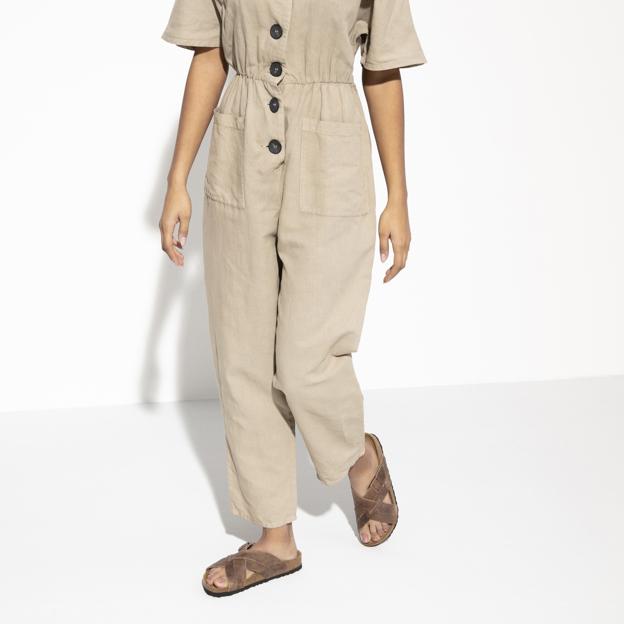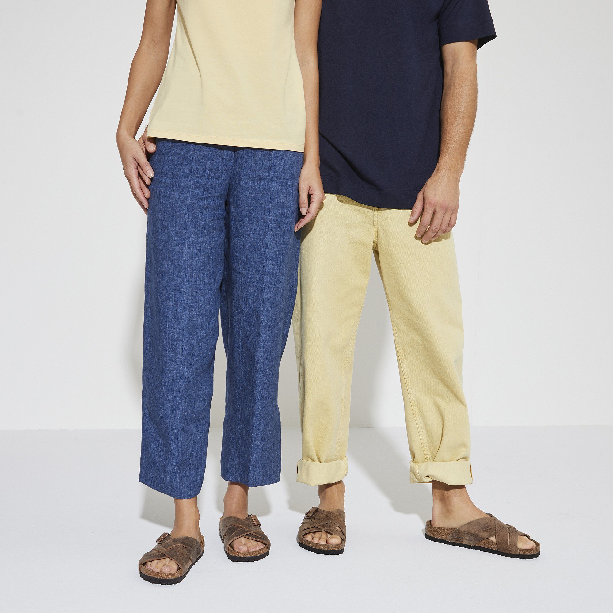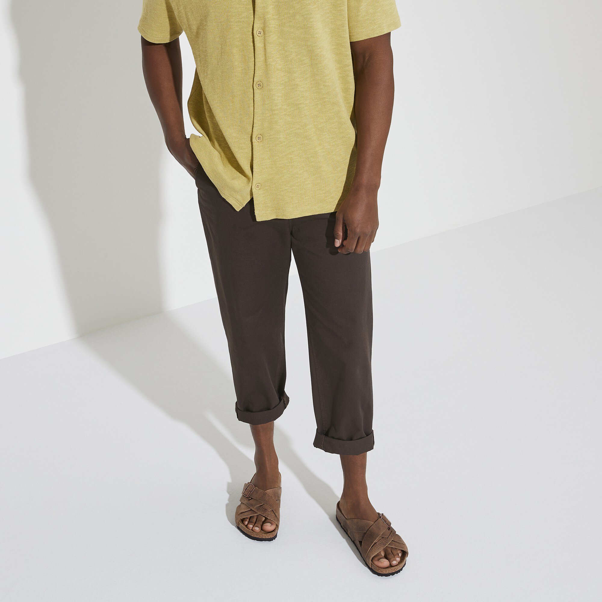 ビルケンシュトック Lugano/ルガーノは色々なスタイルに組み合わせることができるおしゃれなカットのクロスストラップサンダルです。アッパーにはナチュラルなアピアランスが素敵なハイグレードヌバックレザーを使用しています。