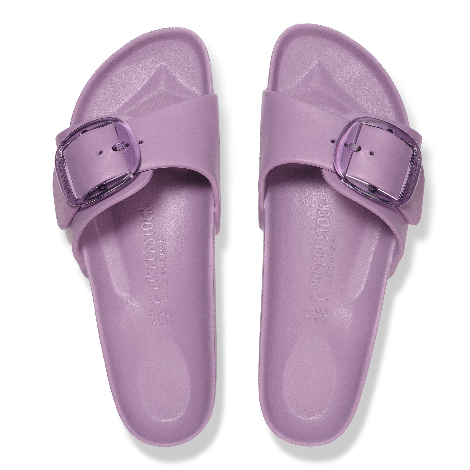 BIRKENSTOCKの定番Madridが、新しくモダンに生まれ変わりました。このバージョンには錆びの心配無用の、耐久性に優れ、ミニマルなデザインが素敵なプラスチック製ビッグバックルを採用しています。このモデルは、コルクサンダルのフォルムを模範に、超軽量で柔軟性に優れたEVA素材を使用しています。有害物質検査済みのEVAは無臭で超軽量、伸縮性が高く、ショックを吸収し、防水性で肌に優しい素材でもあります。
