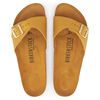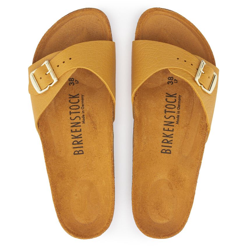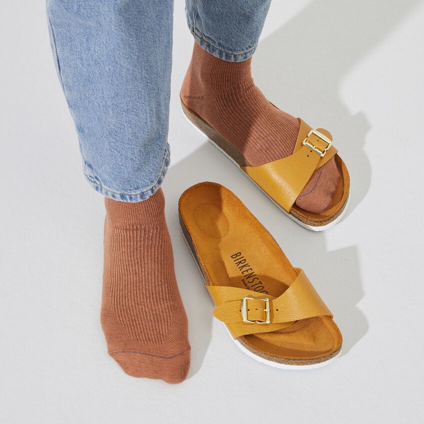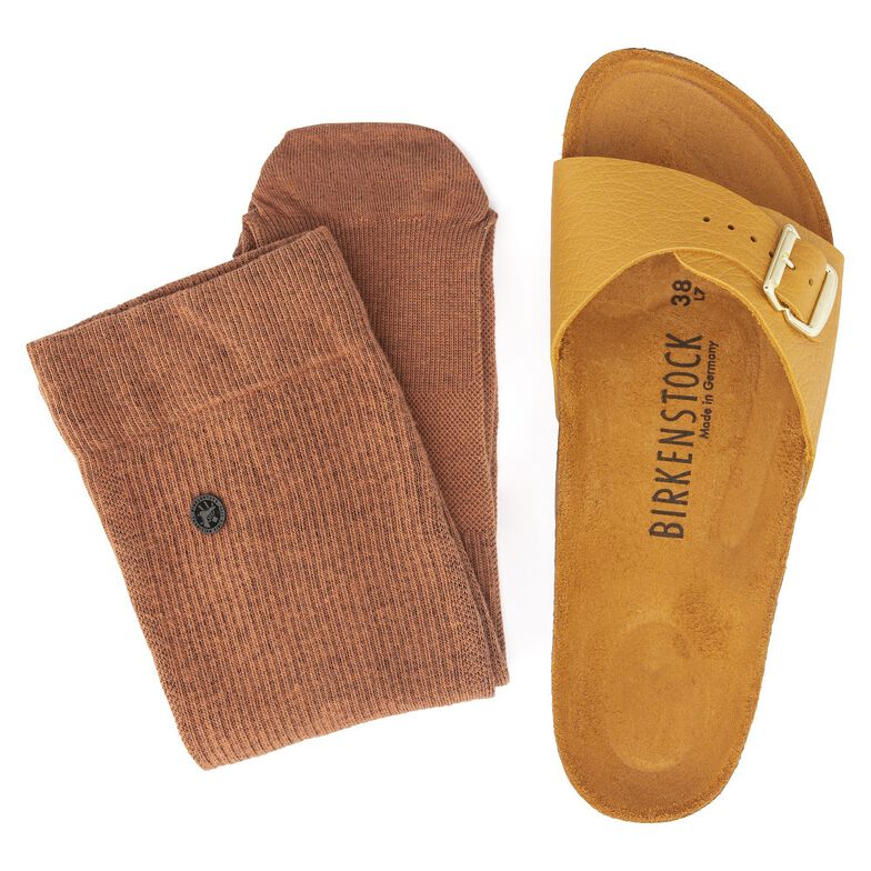 MADRIDはBIRKENSTOCKモデルの中でも一番歴史の長い、定番中の定番です。半世紀前に「運動用サンダル」として発売されたこのピュリスティックなワンストラップモデルは、長く愛されるファッションアイテムとしてその地位を確立してきました。今回、この大人気の定番が当時のデザインをまとったアニバーサリーコレクションとして登場します。バックル、フットベッド、アウターソールからパッケージにいたるまで、1963年のオリジナルを再現し、レトロな雰囲気を醸し出しています。