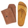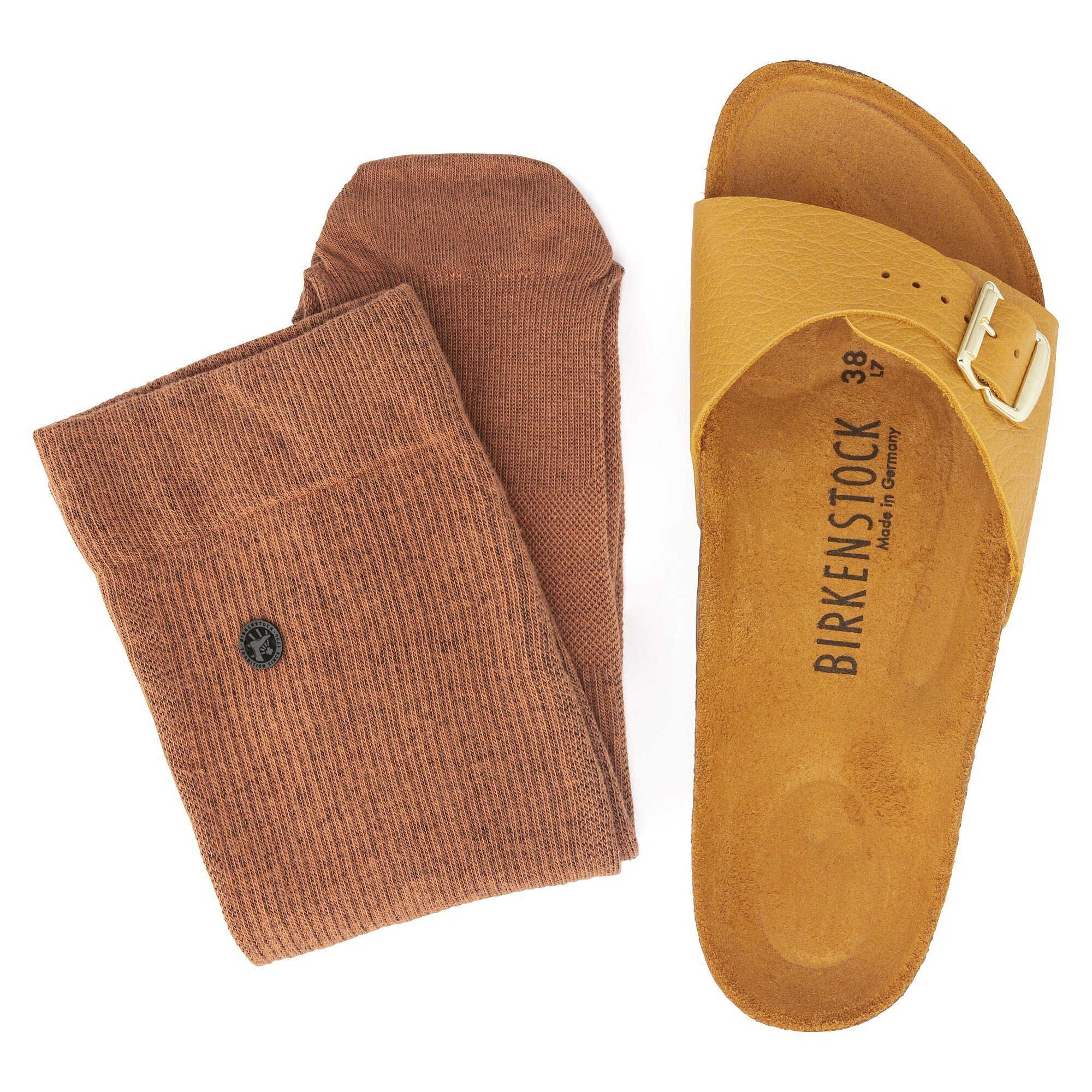 発売開始60周年をお祝いし、ファンが編み出した「SOCKS&STOCKS」スタイルを当時のテイストでお楽しみいただけるよう、こちらのアニバーサリーモデルには、BIRKENSTOCKロゴの赤い封蠟チャームとサンダルに合わせたいソックスが同梱されています。