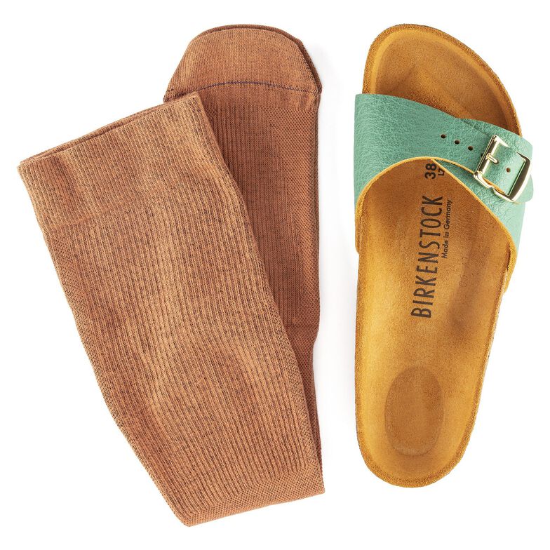 MADRIDはBIRKENSTOCKモデルの中でも一番歴史の長い、定番中の定番です。半世紀前に「運動用サンダル」として発売されたこのピュリスティックなワンストラップモデルは、長く愛されるファッションアイテムとしてその地位を確立してきました。今回、この大人気の定番が当時のデザインをまとったアニバーサリーコレクションとして登場します。バックル、フットベッド、アウターソールからパッケージにいたるまで、1963年のオリジナルを再現し、レトロな雰囲気を醸し出しています。