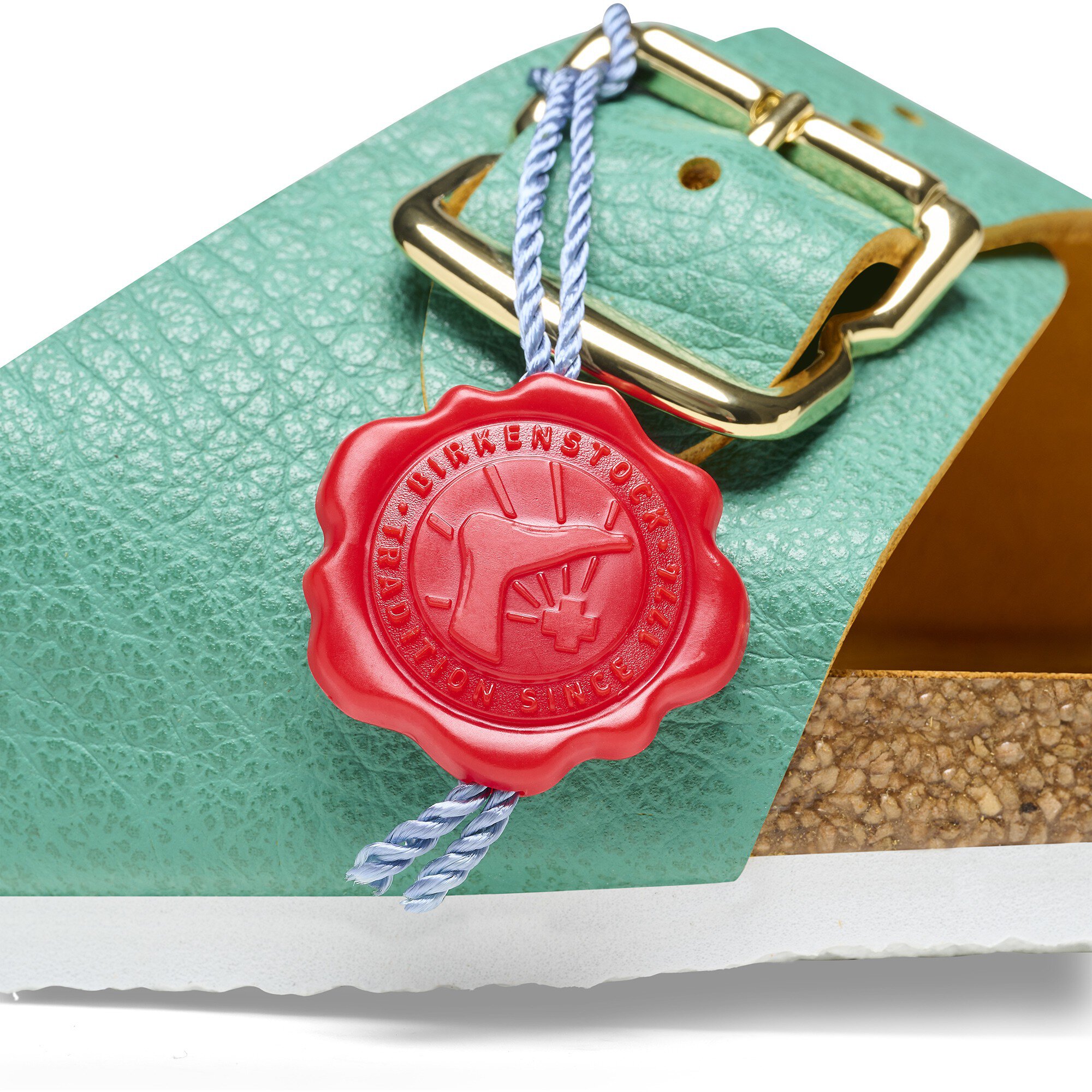 発売開始60周年をお祝いし、ファンが編み出した「SOCKS&STOCKS」スタイルを当時のテイストでお楽しみいただけるよう、こちらのアニバーサリーモデルには、BIRKENSTOCKロゴの赤い封蠟チャームとサンダルに合わせたいソックスが同梱されています。