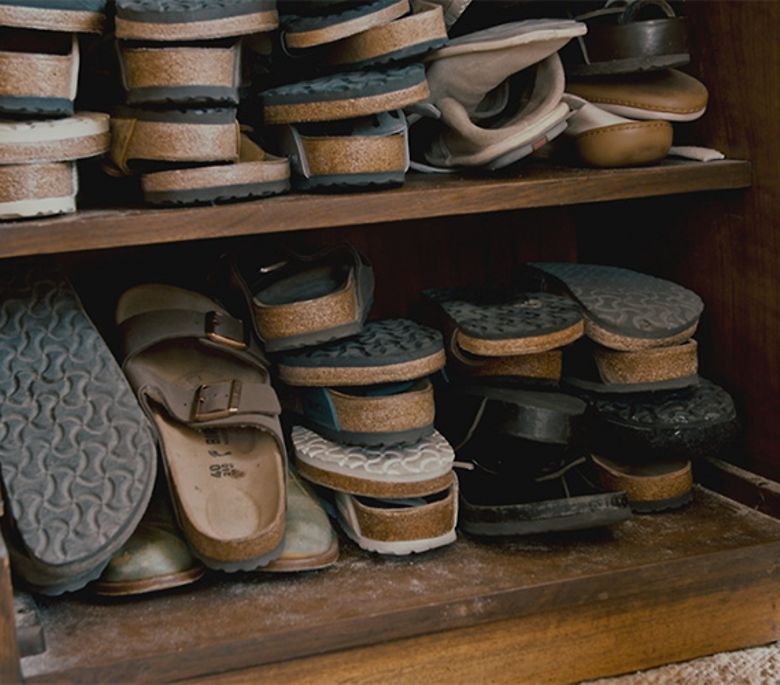 しかし、背に腹は代えられない、と最終的には2足を買って店を出ることになりました。本当は試すだけのつもりで。この日がラブストーリーの始まりです。「あの靴が私を救ってくれたのよ。足にとっては楽園みたいな存在になったの」。今でもあの時の悦びを思い出せるようです。「愛と憎しみのストーリーよね。本当に嫌いな靴だったのに、今はこれがなくちゃ生きていけないわ。本当に面白い話」。