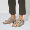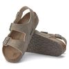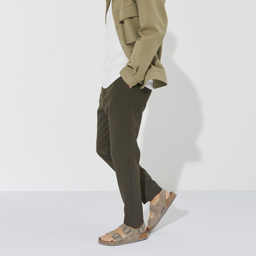 確実なホールド感、安定感、フィット感!バックストラップをあしらったコンパクトなデザインのBIRKENSTOCK Milanoは、そんな約束ができる一足です。カラーコーディネートされたアウターソールでアピアランスもきれいにまとまっています。大人気の定番が、新しい素材を使い時代を反映したビーガンモデルで登場します。このモデルには動物からの素材を一切使用していません。独立試験機関による認定済みのビーガンモデルです。アッパーには肌に優しいマイクロファイバーを使用しています。まるでナチュラルレザーのグレインそのままのアピアランス、でも、このサンダルは100%ビーガンです。