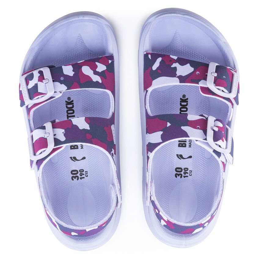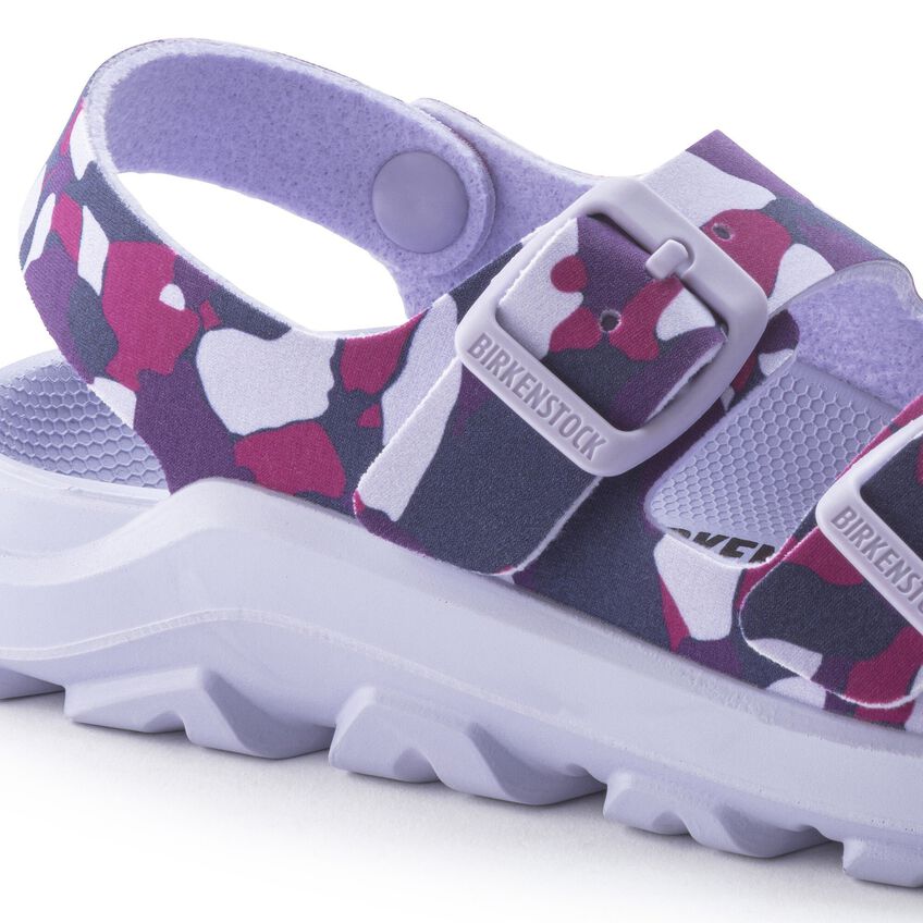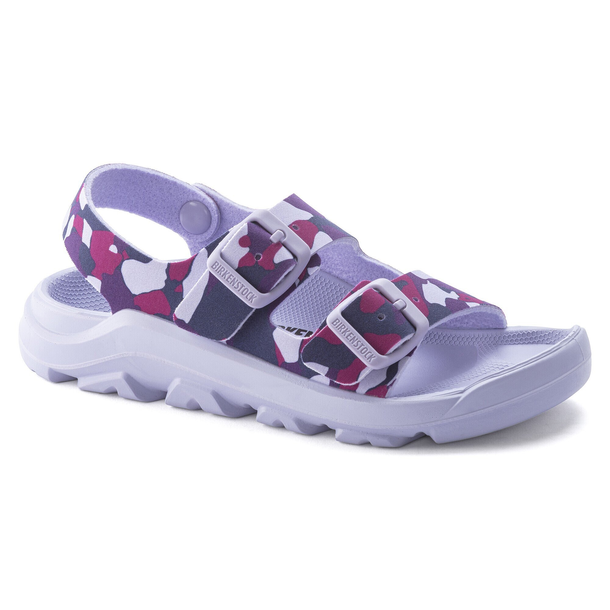 公園で、森で、野原で、そしてぬかるみでも安心のサンダル。BIRKENSTOCK Mogamiはお子様の毎日の大冒険をお供する頼もしい味方です。つま先保護を採用した水にも強いフットベッドと、フットベッドとアッパー素材に2層で発泡成形されているアウターソールがしっかりとお子様の足を守ります。どんな場所でも、柔軟性に富み、しっかり頑丈で長持ちしてくれる嬉しい一足です。今回、ビビッドなカラーを使ったカモフラージュのニューデザインで登場です。アッパーにはポリウレタン(PU)コーティングを施し、シルクの光沢がきれいな肌に優しく耐久性の高い合成素材Birko-Flor®を使用しています。PUコーティングを施すことで、素材の耐久性を向上し、長い間ご愛用頂ける丈夫なモデルに仕上がっています。