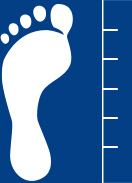 右足を外郭に合わせます。踵と足の内側がラインに沿っていることを確認してください。足の長さをmm単位で読み取ることができます。正確な測定ができるように、測定は立った状態で行ってください。