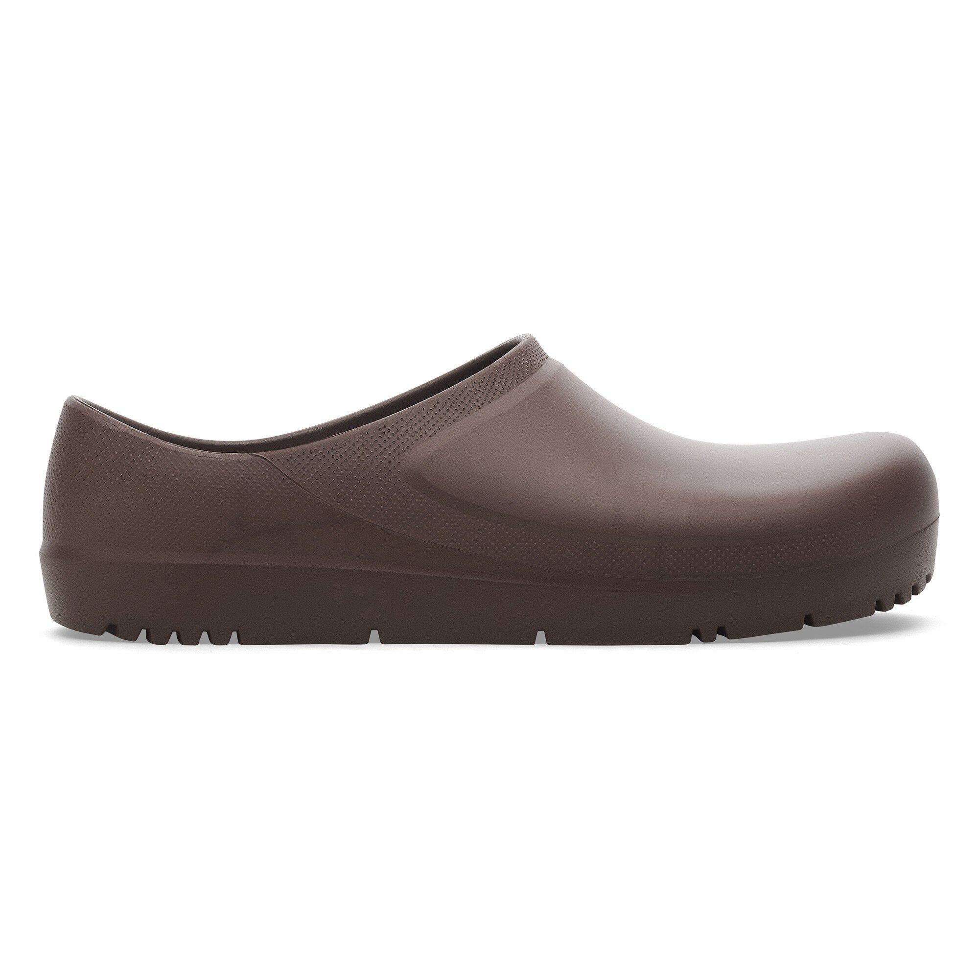 ポリウレタン製クロッグ、Profi Birki 2.0は様々な場面でその実力を発揮してくれるお仕事の頼もしいパートナーです。かかと部分を少し高くしたこの人気のクロッグは、足全体をしっかりと保護し、歩行時のホールド感も抜群です。柔軟なポリウレタン素材の表面を滑らかに仕上げたこのSuper Birkiはオイルやグリースに強く、水も汚れも寄せつけません。こんなProfi Birki 2.0は特に厨房や飲食業界でのお仕事で重宝する一足です。BIRKENSTOCKはアウトソールの設計にあたり、安全性を特に重要視しています。直接発泡させた柔軟なPUソールには深い溝が刻まれており、滑りやすい場所でも抜群のグリップ力を発揮します。そして取り外し可能、マイクロファイバーで覆われたBIRKENSTOCKのフットベッドの抜群のコンフォートが毎日長い時間立ち仕事に勤しむ皆さんを優しく応援します。さらに、このクロッグは高い衛生性を確保できるよう、本体は80℃、ポリウレタンのフットベッドは60℃で洗浄可能です。