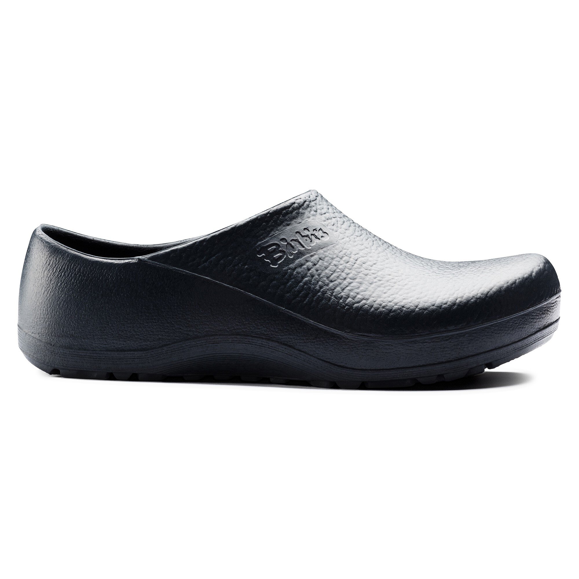 ほぼすべての職業分野で最善のホールド感と確かな足取りを実現するために、ビルケンシュトックはProfi Birkiを開発しました。せり上がった踵周りと長く延びたアッパーで足全体がカバーされ、ステップごとに自然なローリング運動が生まれます。病院、食品産業、厨房などではProfi Birkiは経験豊かなスタッフの一番のチョイスですそして、傑出した衛生特質も高い評価の理由の一つです。耐油脂性のクロッグは80℃まで、取り外し可能なPUフットベッドは60℃までの洗浄が可能で、効果的に殺菌できます。