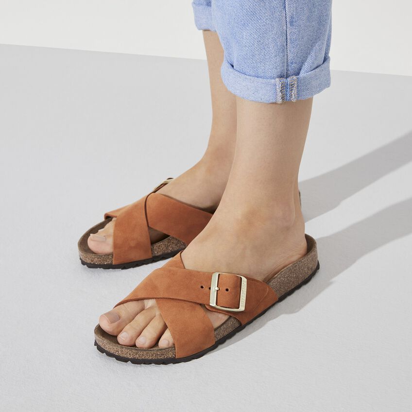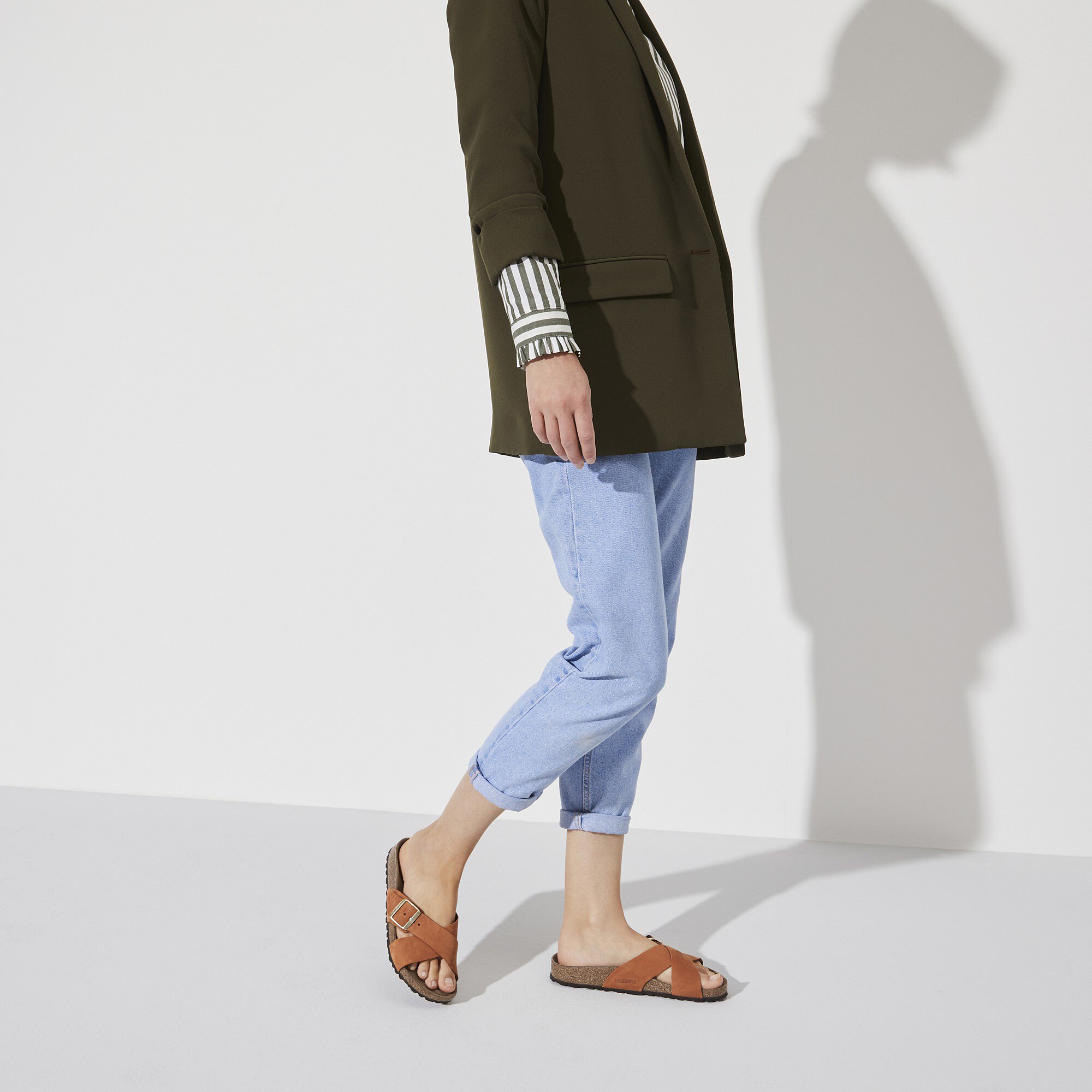 高級感たっぷりのアピアランスが魅力のBIRKENSTOCK Siena。クロスストラップがこのサンダルのユニークなアピアランスを完成させています。フォーム層を追加したソフトフットベッドで、一日中足が疲れない、快適な履き心地を満喫してください。アッパーにはナチュラルなアピアランスが素敵なハイグレードヌバックレザーを使用しています。