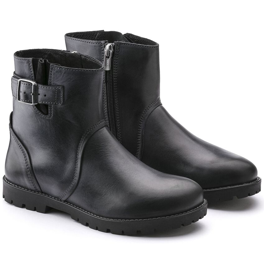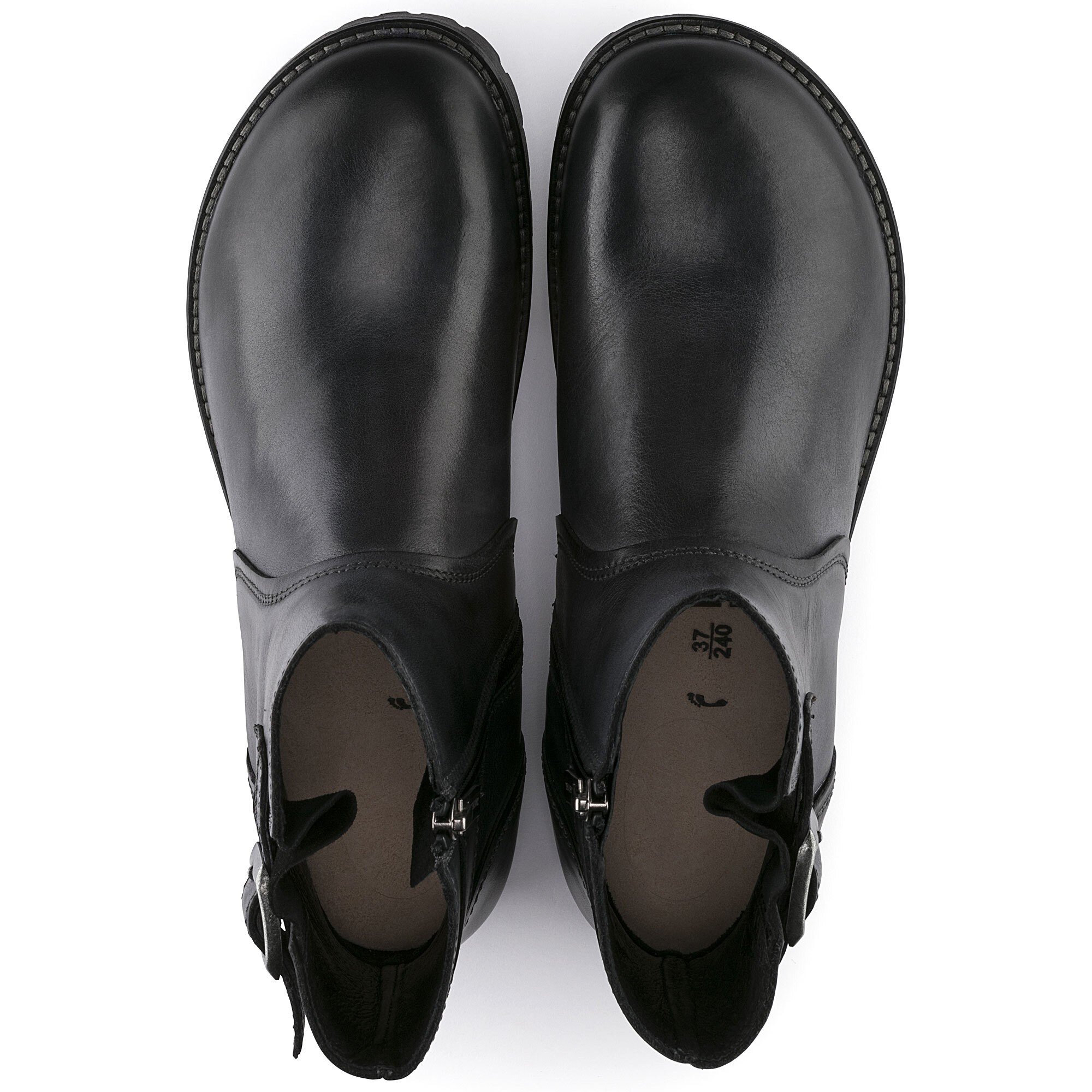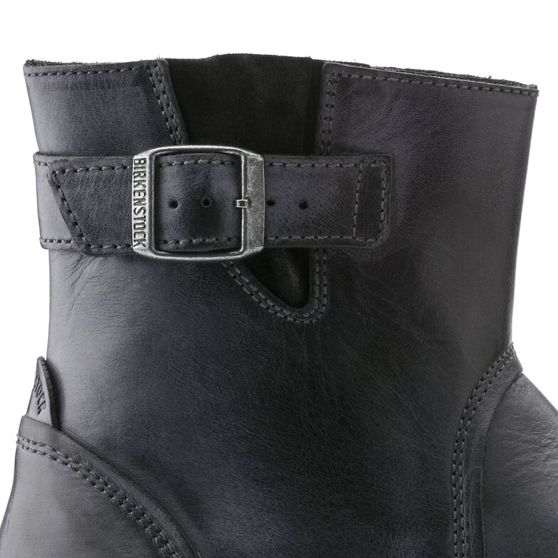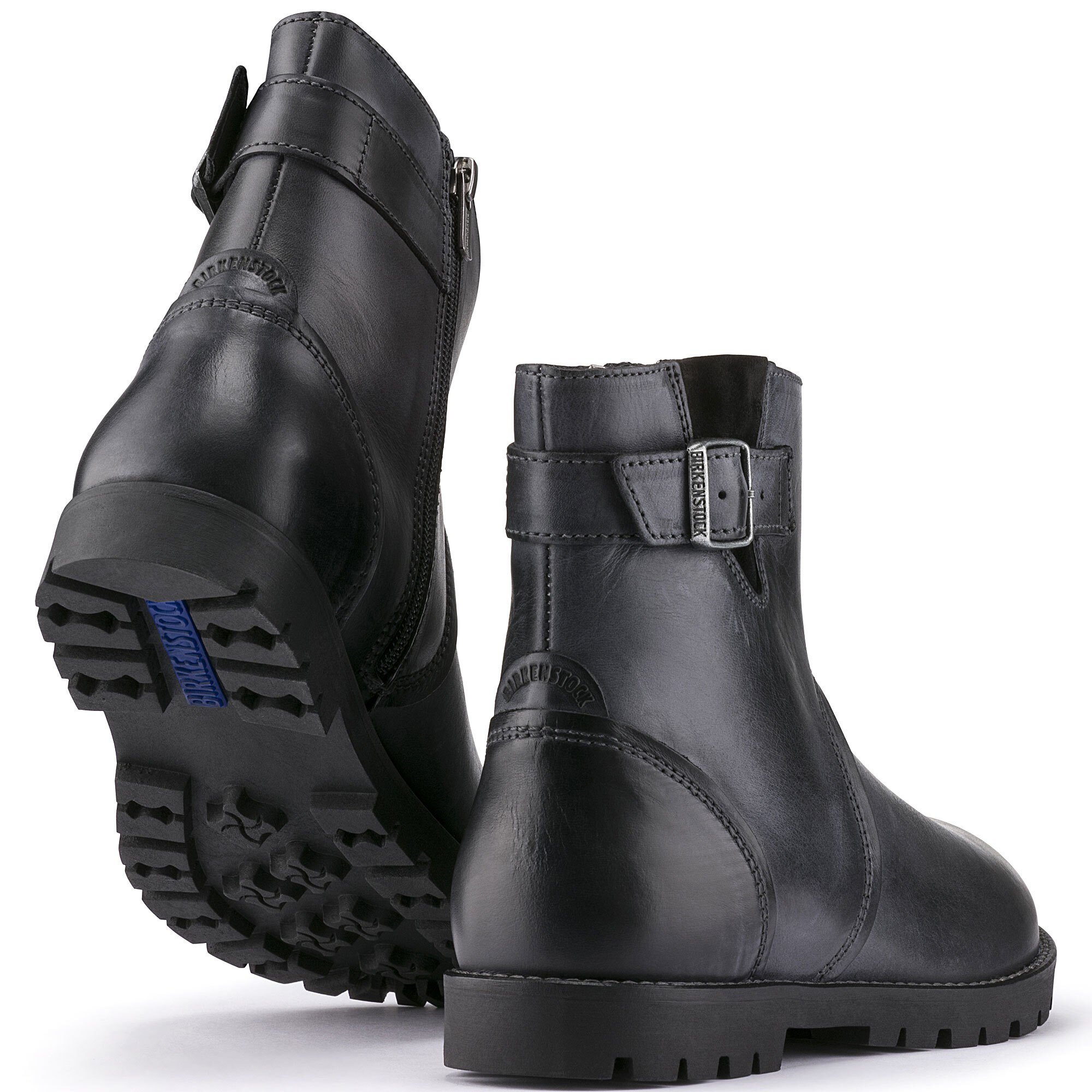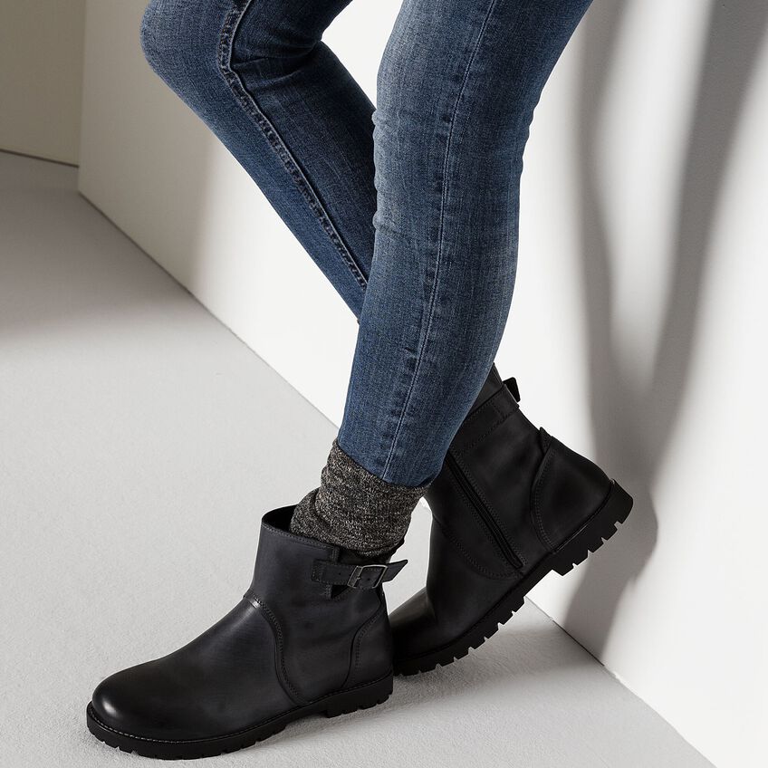 ビルケンシュトックのStoweはオールシーズンお履きいただける、スタイリッシュなバイカーブーツです。アッパー部分には上質なナチュラルレザーを使用し、ステッチなど細かなディティールにまでこだわり、1足ずつ丁寧に作られています。また、サイドファスナー付きで脱ぎ履きも簡単。フットベッドには足の形状を考慮した、オリジナルのコルク製のフットベッドが使用されています。この機能性フットベッドが常に地面からの衝撃を吸収し、足への負担を軽減します。このフットベッドは取り外しが可能な為、ムレを防止してブーツを常に衛生的に保つことができます。どんなスタイルにも合わせやすい1足です。