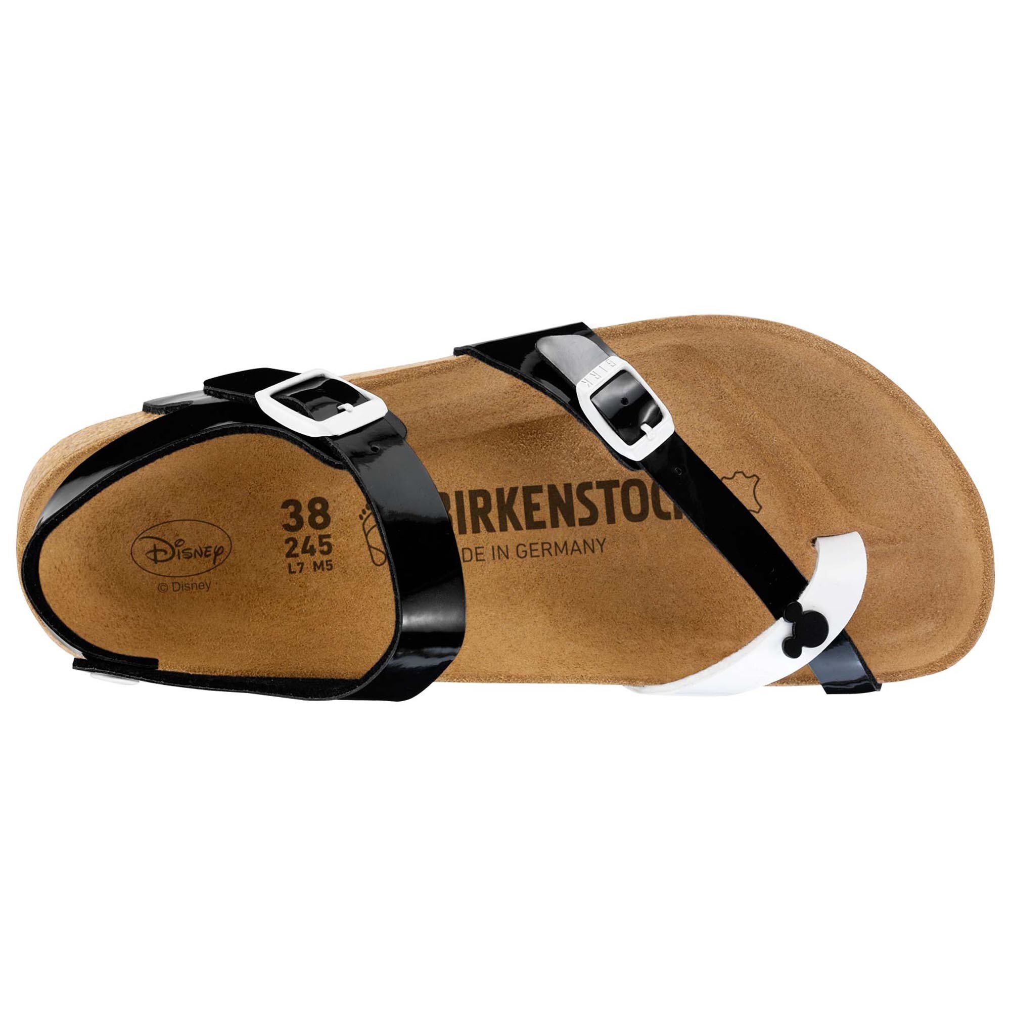 ミッキーマウスで夏を満喫。BIRKENSTOCKサンダTaormina はお洒落な女の子の夏をエレガントに、快適に演出してくれます。足の形状を考慮した天然ゴム混合コルクフットベッドが嬉しい、繊細で透明感のあるこのモデル。ベルトを使って二箇所でフィットを調整することができます。自由にフィット感を調整できる金属製バックルが付いた足首/踵の部分、そして足の甲を支える二本のストラップのおかげで、ぴったりのホールド感をお楽しみいただけます。アッパーに組み込まれている親指ループもこのホールド感に貢献しています。ミッキーもお洒落にデザインされたリベットとしてここに登場します。