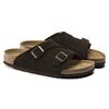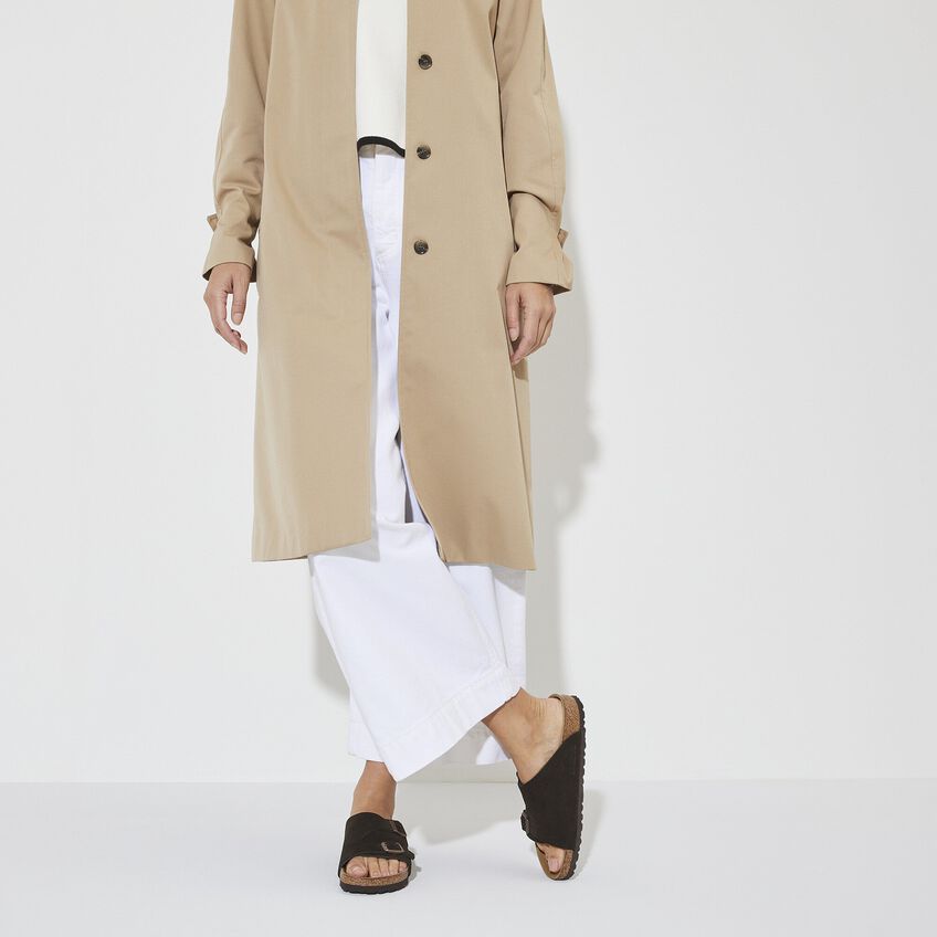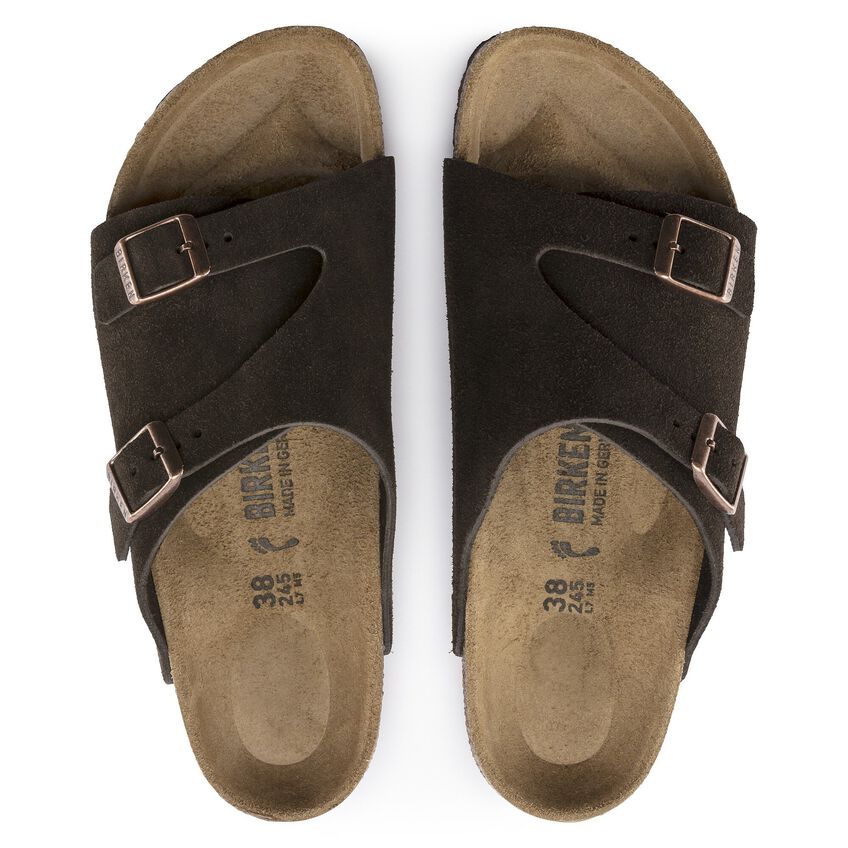 ビルケンシュトックのZürich/チューリッヒは、シューズの安定感とサンダルの軽やかさが統合され、男女問わず大人気の商品です。サイドをカバーし、踵とつま先をオープンにデザインしたこのモデルは通気性に優れた一足です。まるで自分の肌のようにぴったりと足にフィットする柔らかいスエードレザーのアッパーが、ナチュラル感をアピールしています。