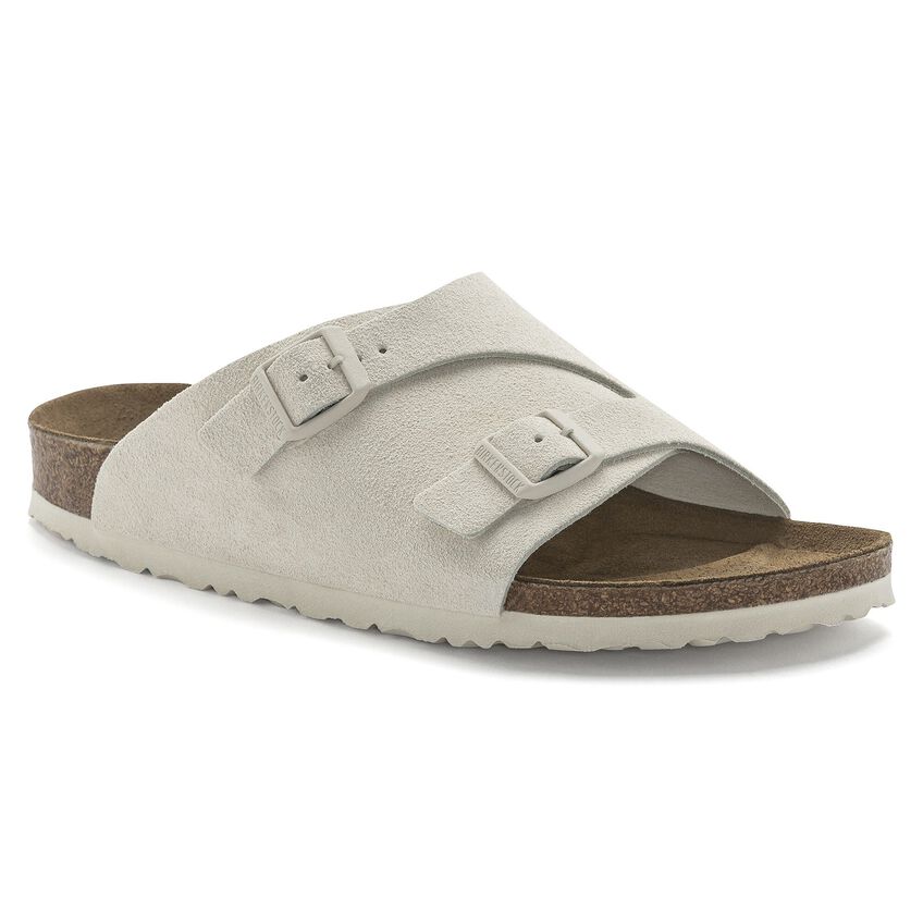 ビルケンシュトックのZürich/チューリッヒは、シューズの安定感とサンダルの軽やかさが統合され、男女問わず大人気の商品です。サイドをカバーし、踵とつま先をオープンにデザインしたこのモデルは通気性に優れた一足です。まるで自分の肌のようにぴったりと足にフィットする柔らかいスエードレザーのアッパーが、ナチュラル感をアピールしています。