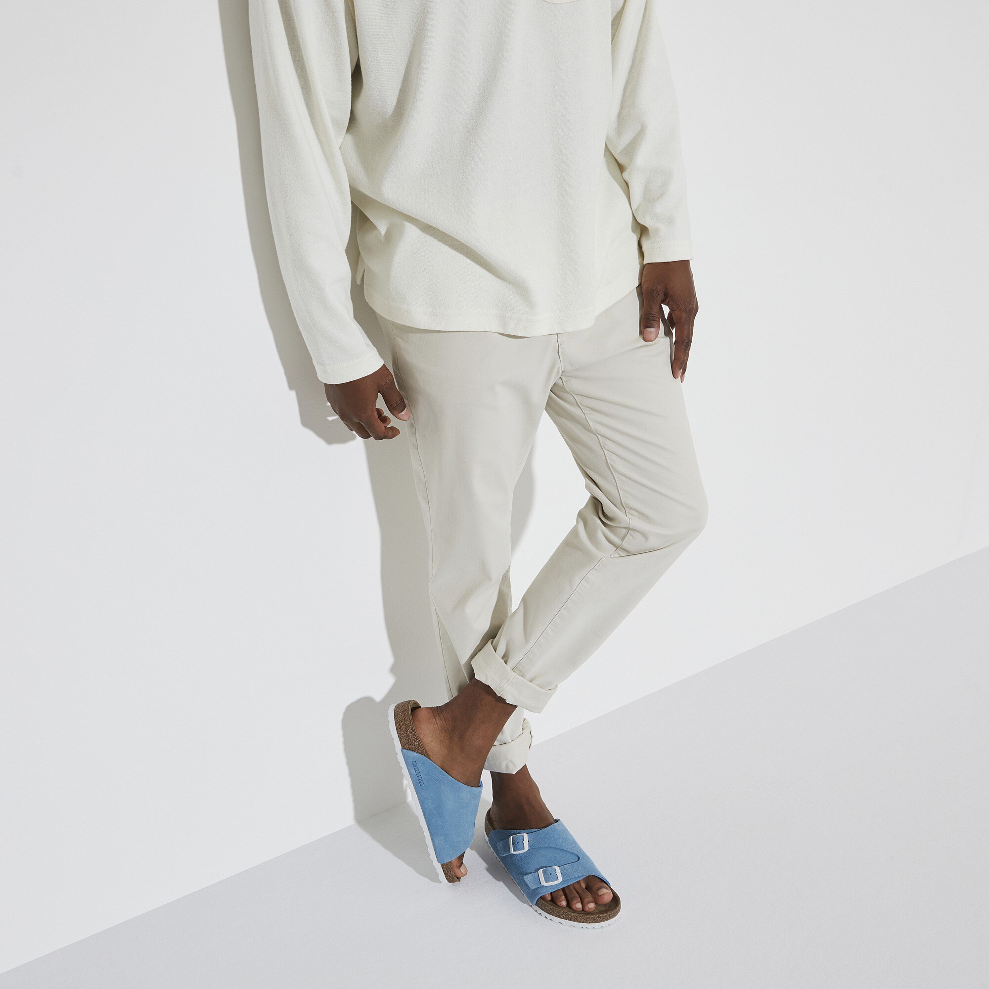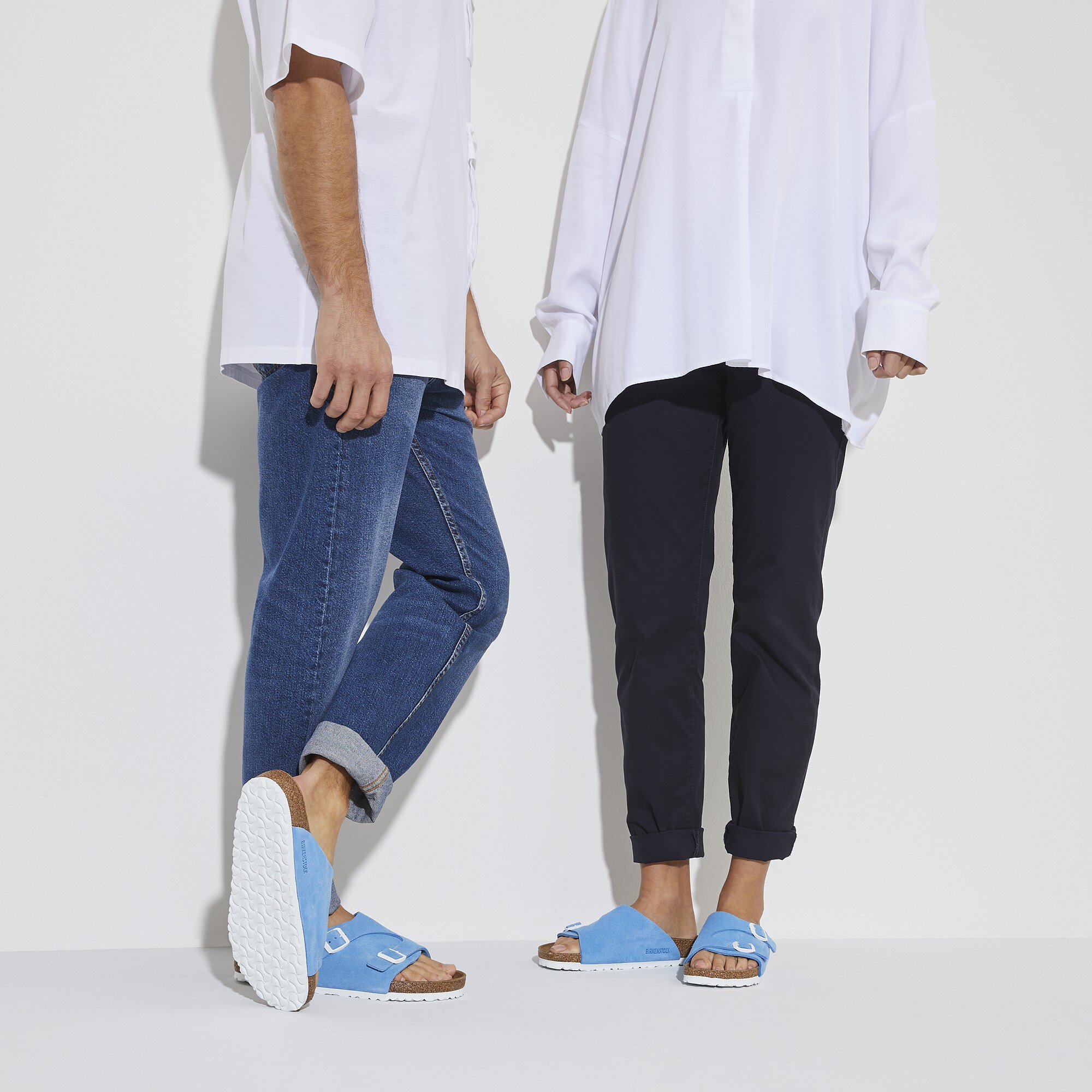 良いとこ取り!BIRKENSTOCKはZürichでシューズの安定感とサンダルの軽やかさを統合させました。ディテールがアッパーにカラーコントラストを効かせ、完璧なスタイリングをきれいにまとめています。素敵なアクセントは繊維の触感が嬉しいマットカラーのバックルです。アッパーに足をもう一枚の肌のように優しく包み込む特に柔らかいベロアレザーを使用し、ナチュラル感たっぷりのデザインが仕上がりました。