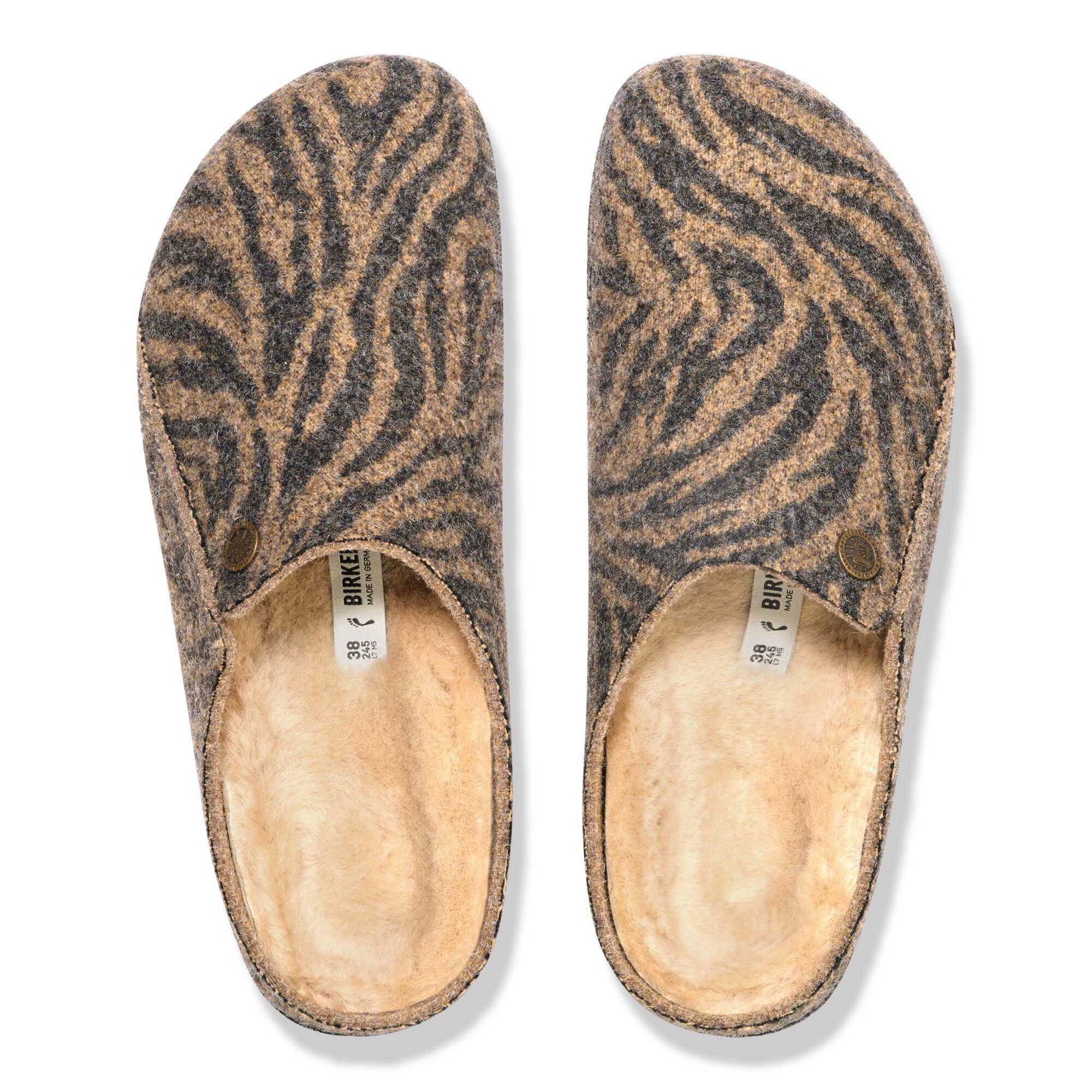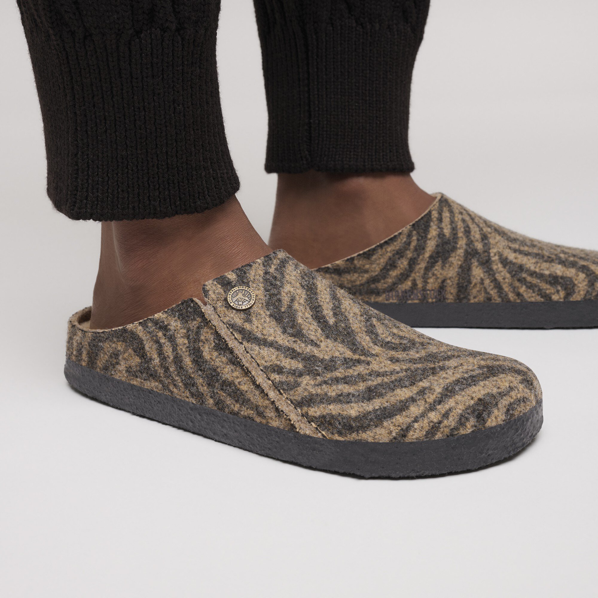BIRKENSTOCK Zermattは、当社初のフットベッドが取り外し可能な室内シューズで、3種類のインソールからお選びいただけます。スタンダードフットベッド、ソフトフットベッド、シアリングフットベッドの3種類をご用意しています。3種類はどれも別個にご注文いただけます。季節を通してご利用いただけるルームシューズです。このバリエーションは、シアリングフットベッドのベーシックなデザインになっています。ラムスキンボアの中敷のおかげで、冬の寒い一日でも足元はホカホカ。アッパーには柔らかいウールフェルトを使用しています。