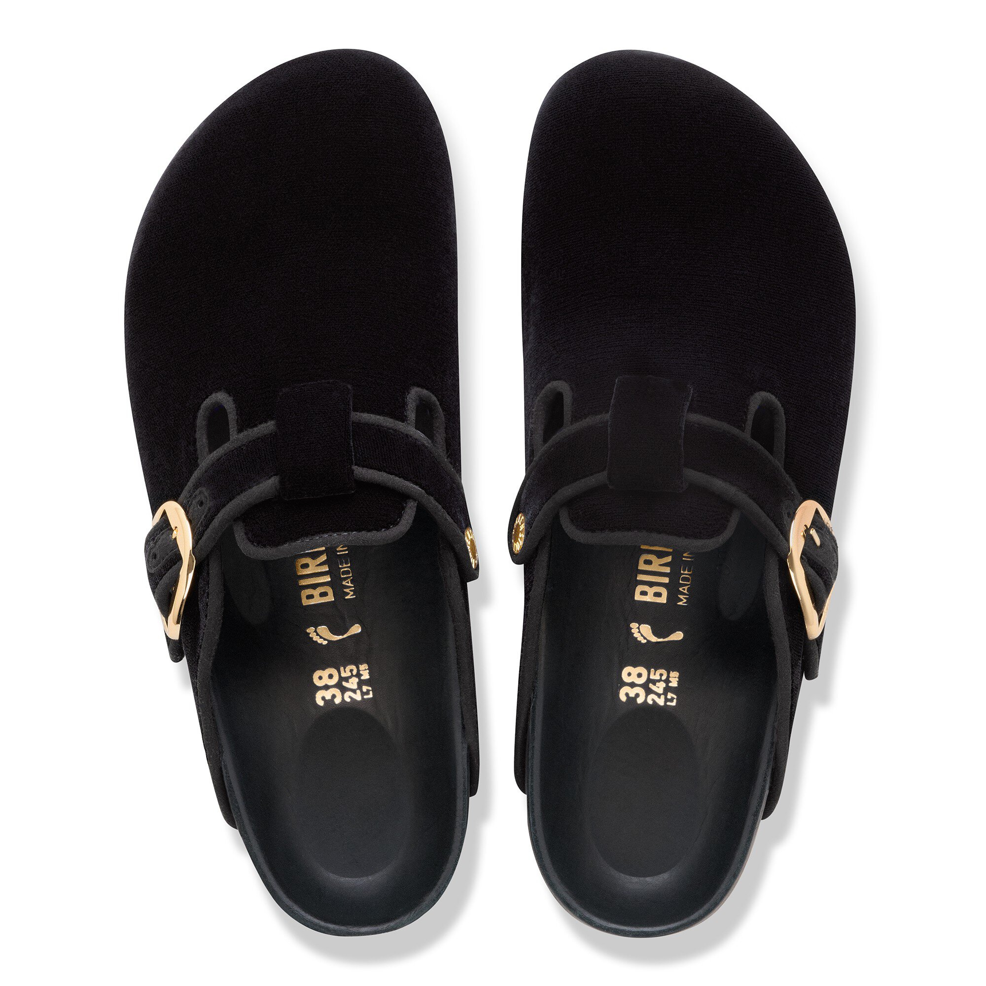 버켄스탁 보스턴은 일 년 내내 편안하게 신을 수 있는 대표적인 클래식 모델 중 하나입니다. 개별 조절 가능한 스트랩과 세련된 디자인으로 오랫동안 많은 사랑을 받고 있습니다. 이 모델은 두 가지 인기 있는 디자인을 결합한 제품입니다. 고급스러운 벨벳 소재와 빅 사이즈의 우아한 핀 버클이 특징이며, 익스퀴짓 풋베드는 전체가 부드러운 피우마토 가죽으로 덮여 있으며 매우 편안한 착용감을 제공합니다. 갑피는 벨벳 같은 감촉의 부드러운 패브릭으로 제작되었습니다.