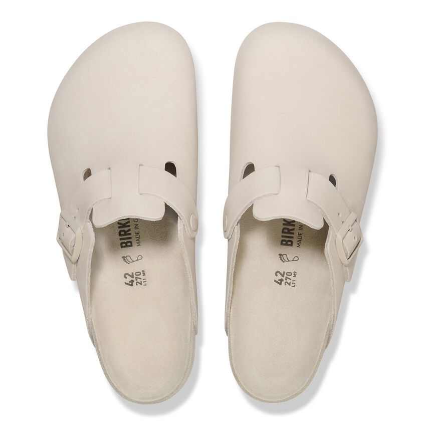 버켄스탁 보스턴은 일 년 내내 편안하게 신을 수 있는 대표적인 클래식 모델 중 하나입니다. 개별 조절 가능한 스트랩과 세련된 디자인으로 오랫동안 많은 사랑을 받고 있습니다. 컬러 배색된 고급 풋베드는 전체가 부드러운 벨벳 가죽으로 덮여 있어 매우 편안한 착용감을 제공합니다. 컬러 배색 핀 버클이 신발의 세련된 외관을 완성합니다. 갑피 소재는 고급스럽고 부드러운 누벅 가죽으로, 자연스럽고 간결한 느낌의 외관이 특징입니다.