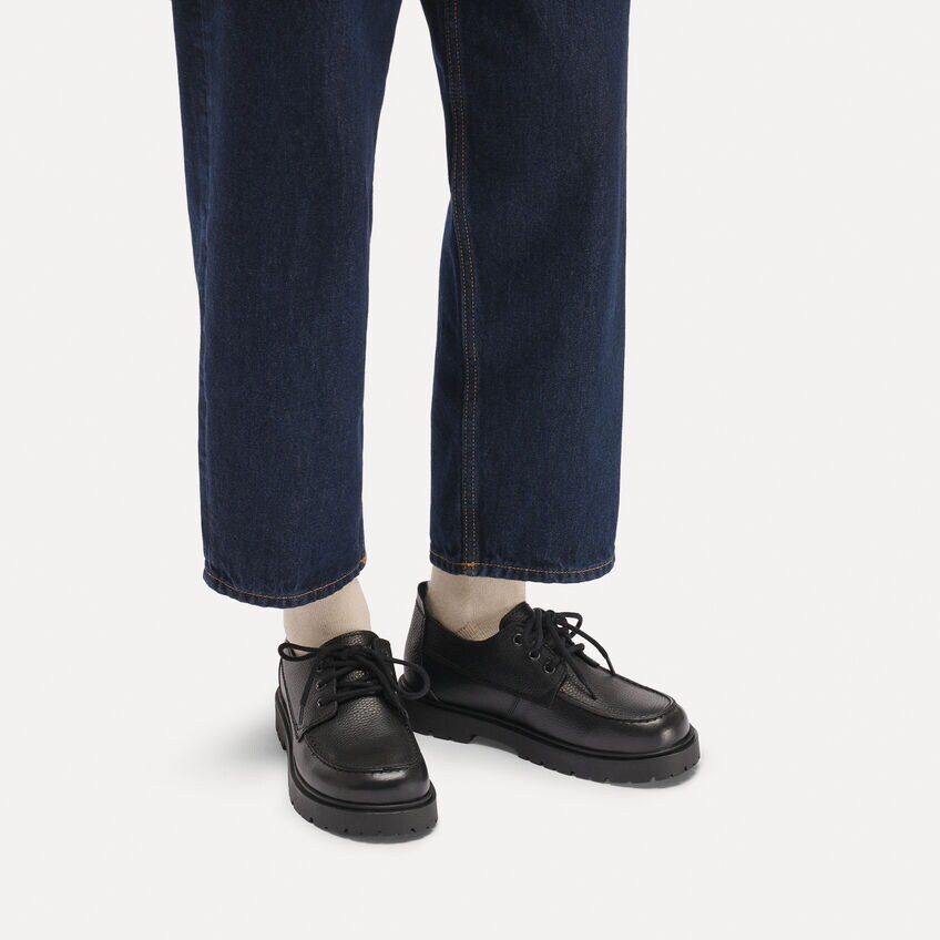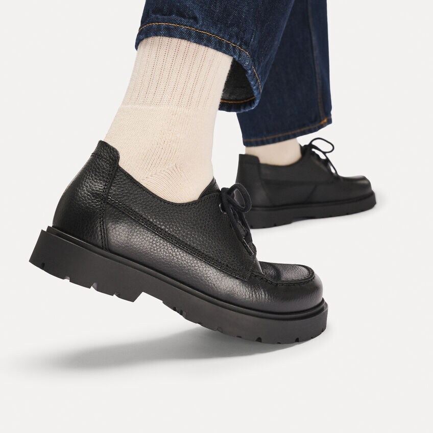 하이우드 목 레이스 로우 천연 가죽 - 블랙