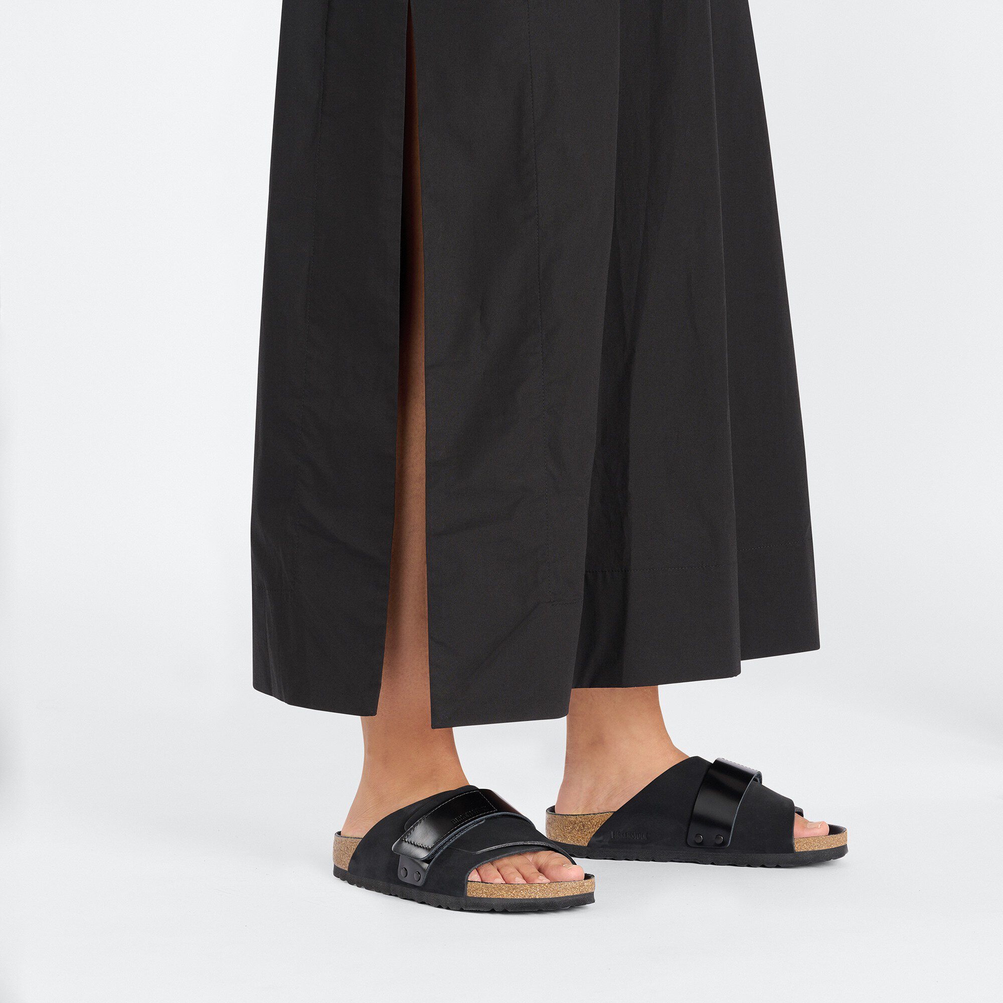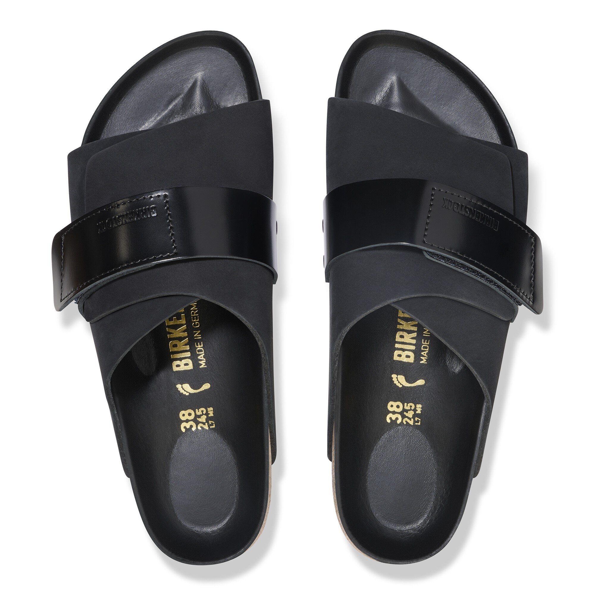 캐주얼한 BIRKENSTOCK 교토는 클래식한 취리히 모델에서 영감을 얻어 컴팩트한 디자인과 훅앤루프 타입의 개별 조절 가능한 스트랩이 돋보입니다. 이 모델은 최적의 지지력을 제공하며 두 개의 장식용 리벳이 특징입니다. 반짝이는 스트랩 부분이 세련되게 시선을 사로잡습니다. 세미 익스퀴짓 풋베드는 전체가 부드러운 피우마토 가죽으로 안감 처리되어 매우 편안합니다. 갑피는 고품질의 부드러운 누벅 가죽으로 제작되었으며, 광택이 나는 천연 가죽의 포인트 디테일로 완성되었습니다.