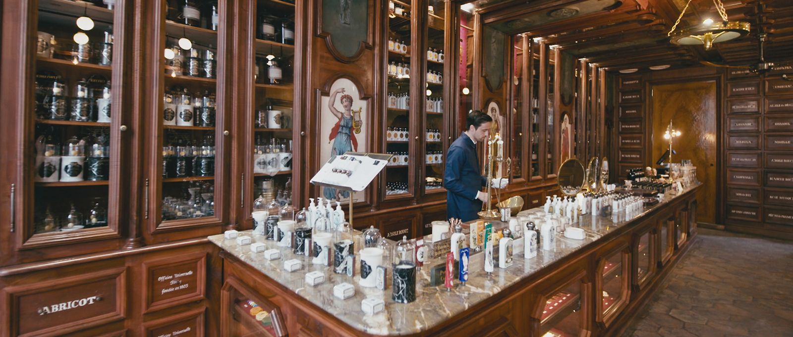부티크에 들어서면 주변의 모든 것이 순식간에 바뀌고 최고급 비누, 로션, 페이스트에 둘러싸여 오랫동안 잊고 지냈던 세계에 빠져들게 됩니다. 오피시네는 현재 900여 가지의 제품을 판매하고 있으며, 뛰어난 품질과 아름다운 포장, "Eau de la belle haleine" 같은 고풍스러운 이름이 특징입니다. 모든 레터링은 사내 캘리그래퍼인 브루노가 직접 디자인하여 선물에 품격 있는 인사말을 더해줍니다.
