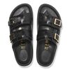 BIRKENSTOCK 익스퀴짓 모델의 풋베드 안감과 풋베드 바깥쪽 가장자리는 매우 부드럽고 유연한 나파 가죽으로 감싸져 있습니다.