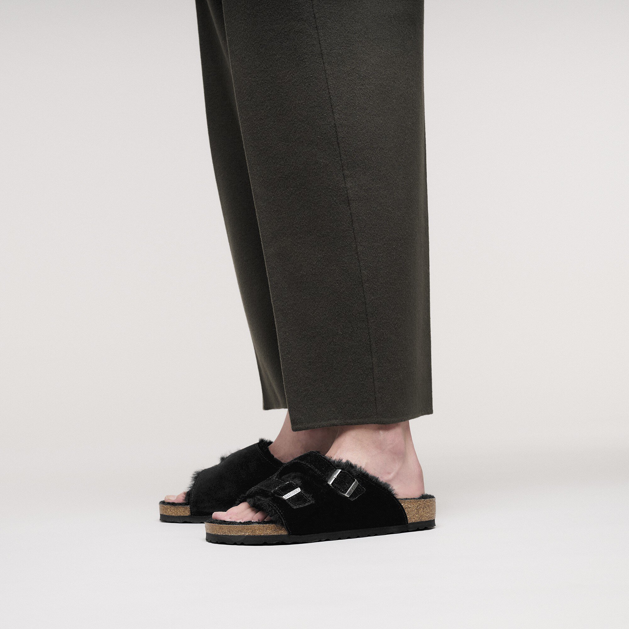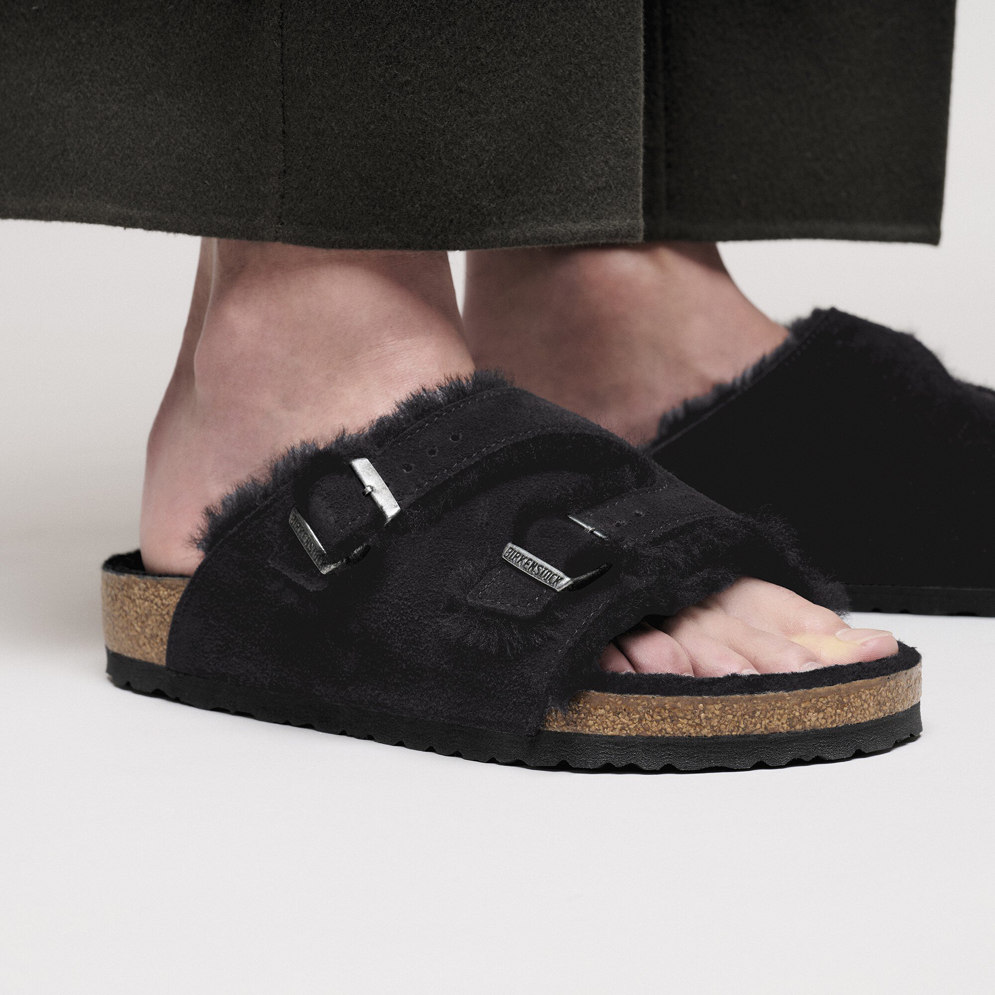 버켄스탁 취리히는 클로즈드 슈즈의 안정성과 샌들의 가벼움을 결합한 제품으로, 남성과 여성 모두에게 사랑받은 모델입니다. 측면은 덮혀 있지만 발가락과 뒤꿈치 부분은 오픈되어 있어 발이 신선한 공기를 충분히 느낄 수 있습니다. 이 모델은 매우 포근한 퍼 안감이 특징입니다. 특히 부드러운 스웨이드 소재의 갑피가 발을 마치 제2의 피부처럼 감싸는 자연스러운 디자인이 특징입니다.