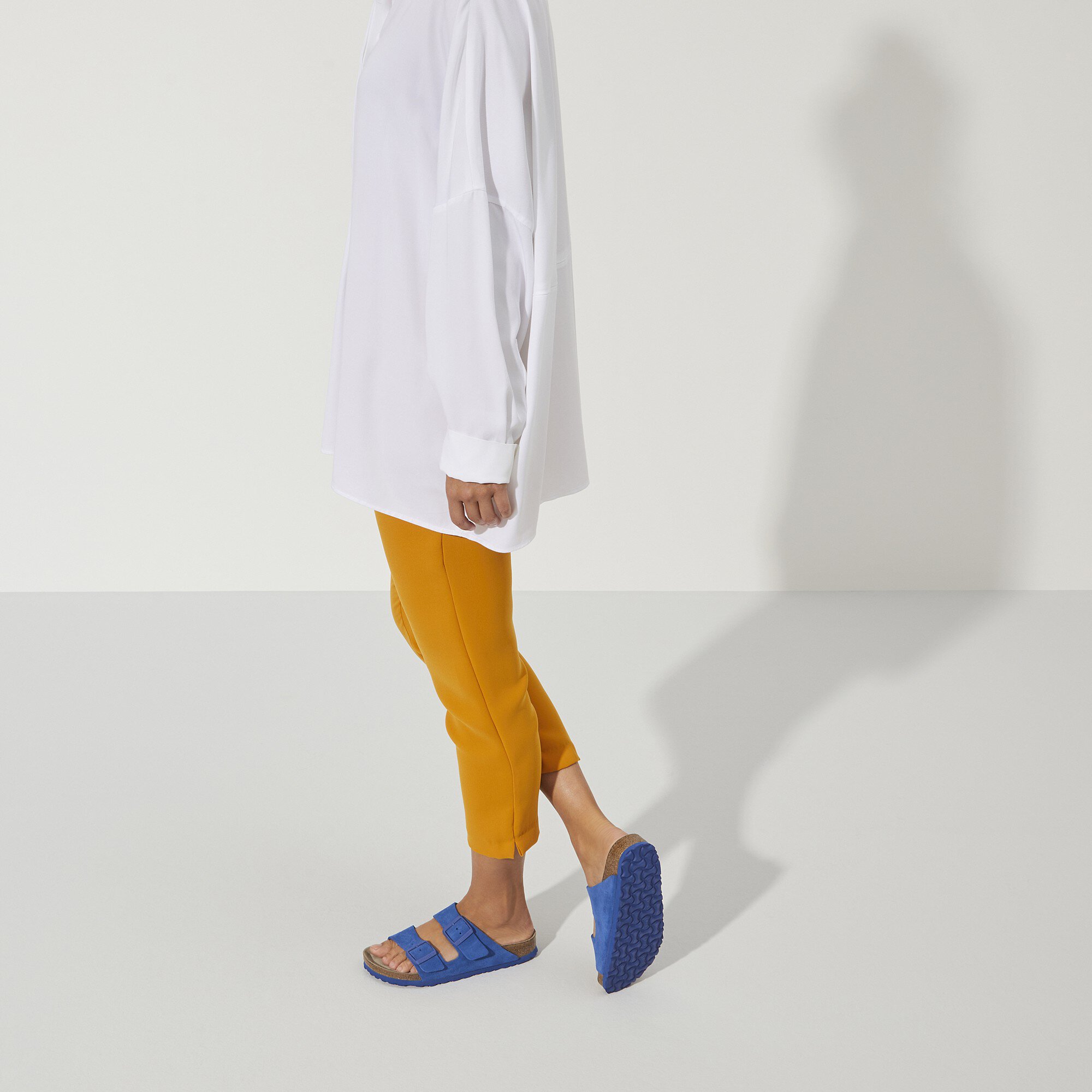 صندل أريزونا من بيركنستوك هو أحد التصاميم الكلاسيكية الأصلية التي لطالما أسعدت الرجال والنساء على حد سواء لعقود بفضل نمطها الخالد. وتكتمل أناقة التصميم الراقي بالنعل الخارجي بلونه المتناسق. تُعد الأبازيم بلون متناسق وملمس النسيج والتصميم غير اللامع عناصر إضافية لافتة للنظر. بفضل الطبقة الإسفنجية الإضافية، يوفر النعل الناعم مزيدًا من الراحة والعناية بالقدمين، طوال اليوم. الجزء العلوي مصنوع من الجلد السويدي الناعم بشكل خاص والذي يحيط بالقدم ليمنحها شعورًا بالراحة وكأنه جزء من البشرة.