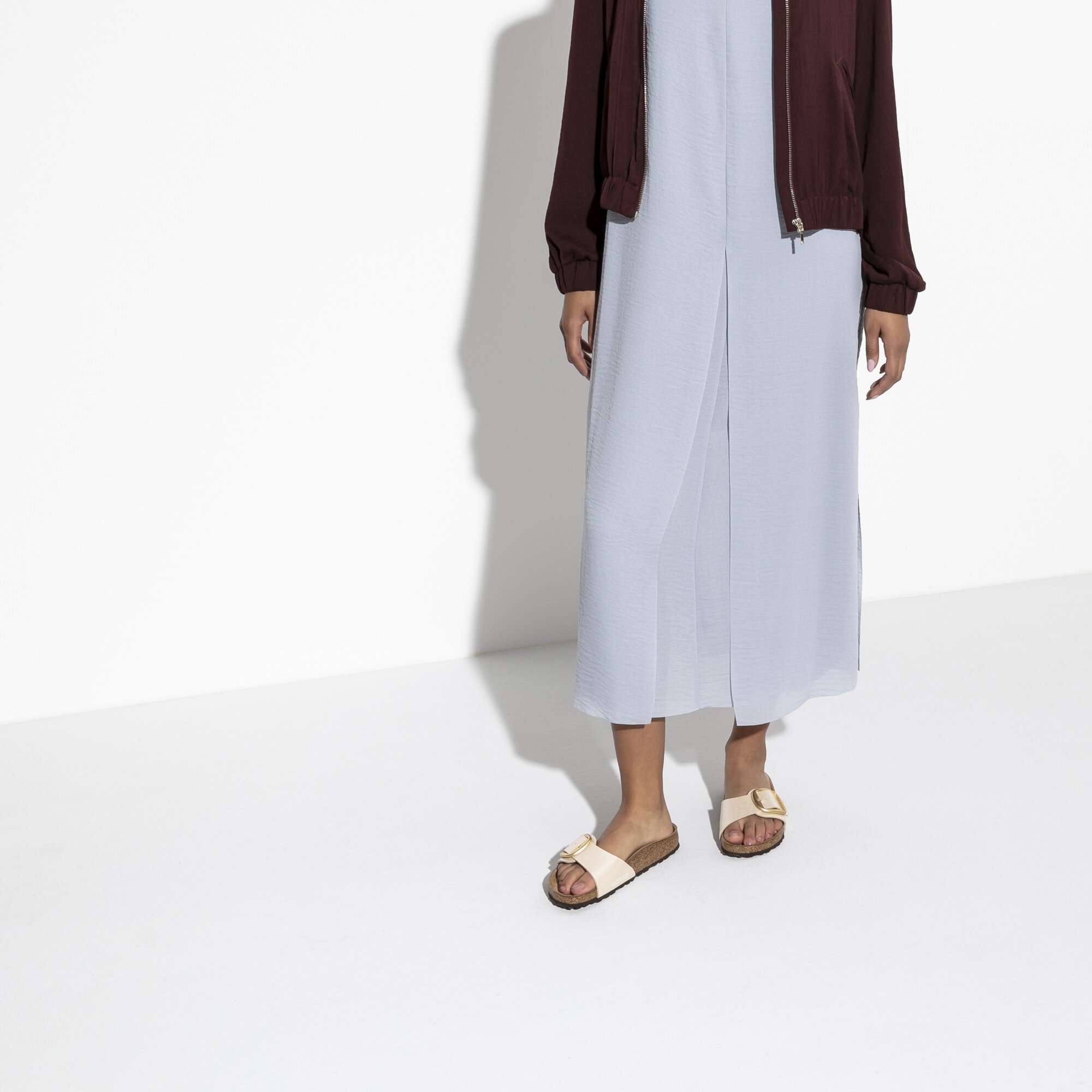 يتميز صندل مدريد من بيركنستوك بتصميم كلاسيكي أصلي يبهج عالم الموضة بطابعه البسيط. يجمع هذا الطراز بين تصميمين شهيرين، مع لمسة نهائية حريرية لامعة رقيقة وإبزيم كبير وأنيق بدبوس. الجزء العلوي مصنوع من مادة بيركوفلور الاصطناعية اللطيفة على البشرة والمتينة.