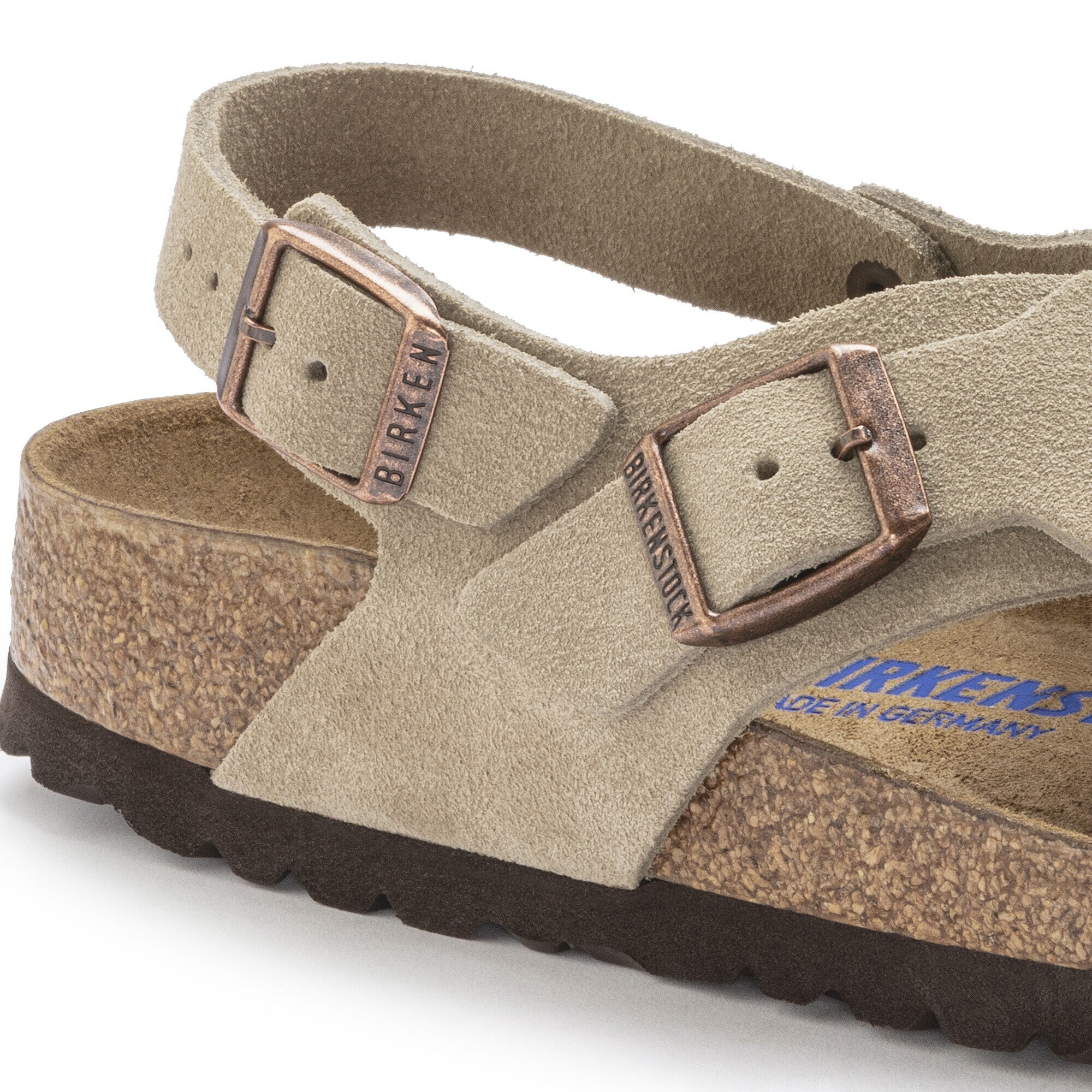 يتميز تولوم من بيركنستوك بإطلالة رياضية. تضفي الأشرطة المتقاطعة والشريط على الكعب مظهرًا فريدًا ومميزًا على الصندل. بفضل الطبقة الإسفنجية الإضافية، يوفر النعل الناعم مزيدًا من الراحة والعناية بالقدمين، طوال اليوم. تكتمل أناقة التصميم الراقي باللون المتناسق للأبازيم المزودة بدبوس. الجزء العلوي مصنوع من الجلد السويدي الناعم بشكل خاص والذي يحيط بالقدم ليمنحها شعورًا بالراحة وكأنه جزء من البشرة.