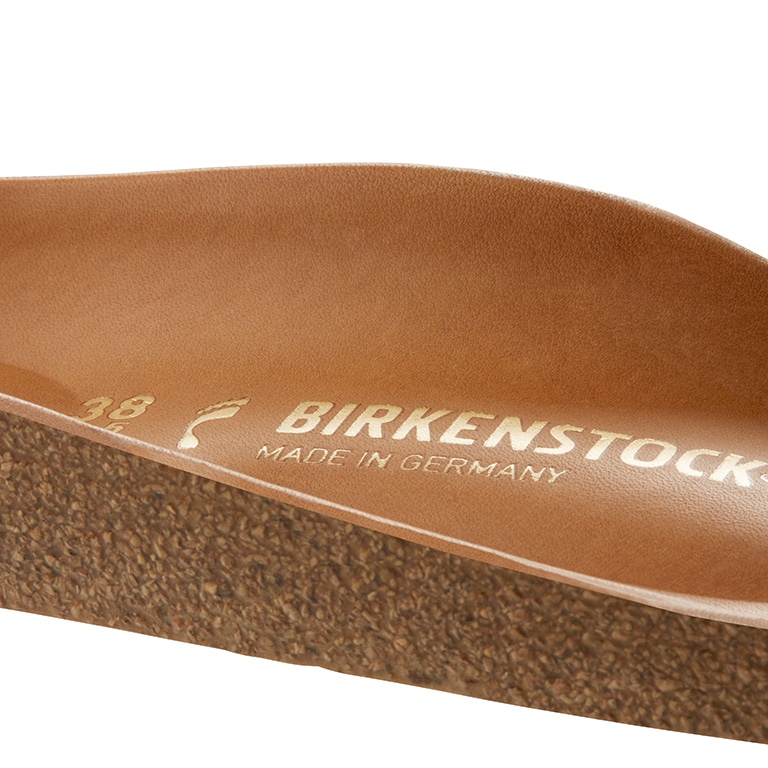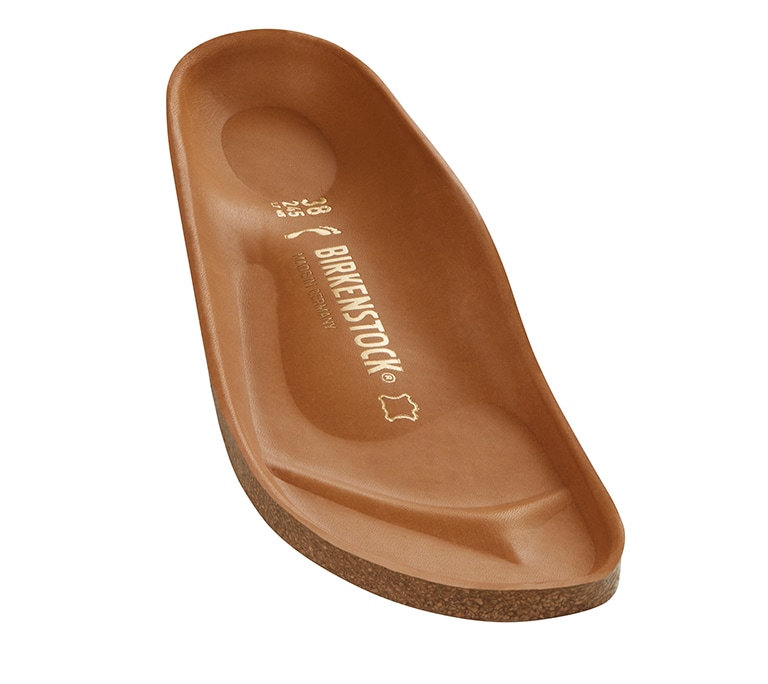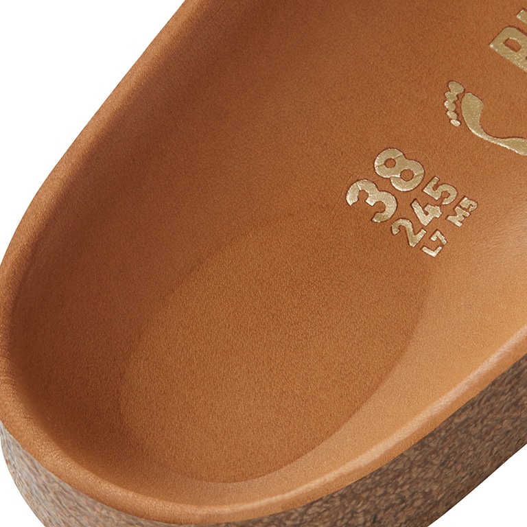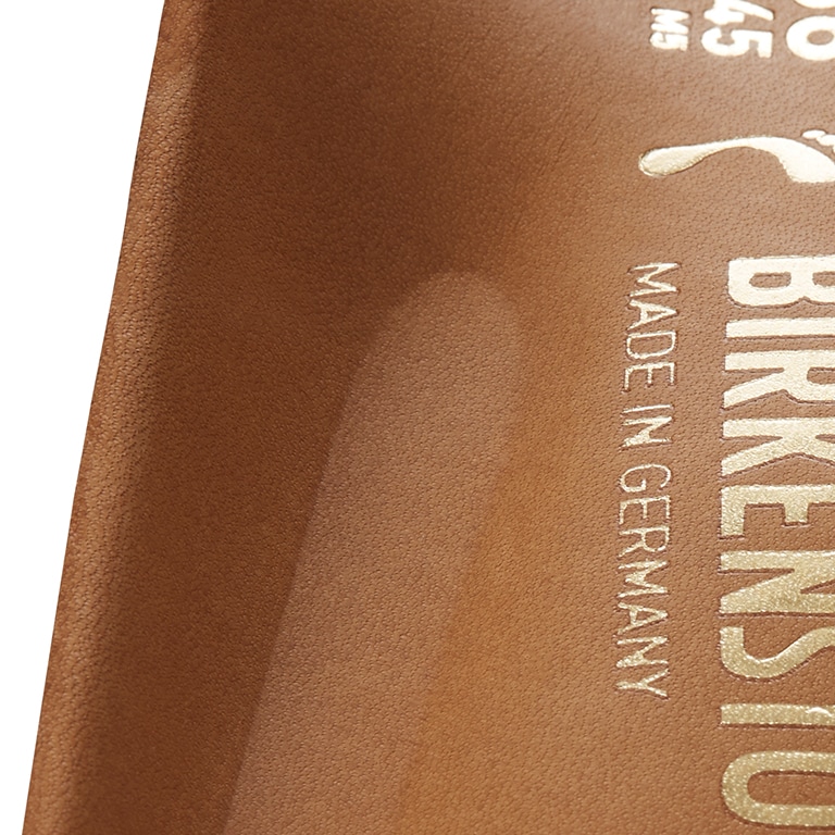 Natural leather can be recognized by its untreated surface. BIRKENSTOCK purposely does not treat surface grains and other characteristic features. BIRKENSTOCK uses sturdy leather with a thickness of 2.8 to 3.2 millimeters as upper material.