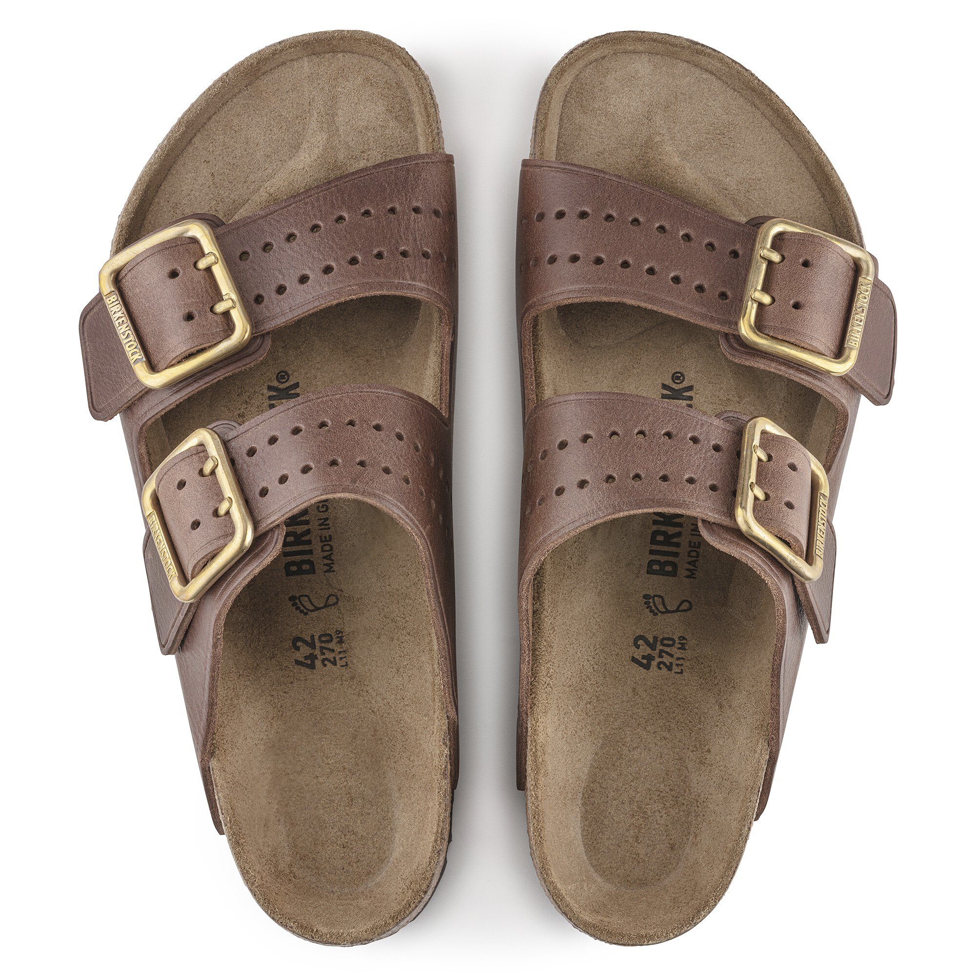 Natural leather can be recognized by its untreated surface. BIRKENSTOCK purposely does not treat surface grains and other characteristic features. BIRKENSTOCK uses sturdy leather with a thickness of 2.8 to 3.2 millimeters as upper material.