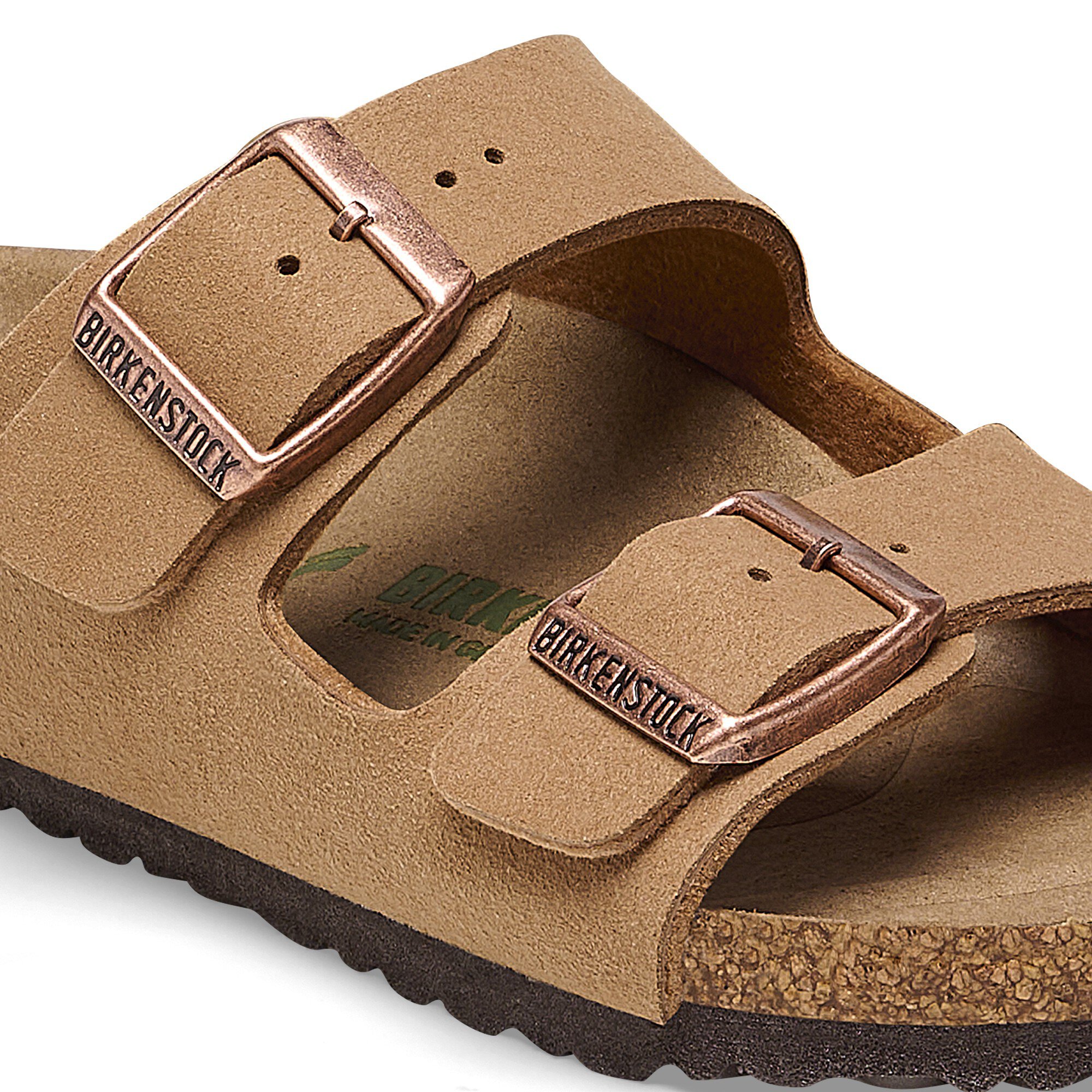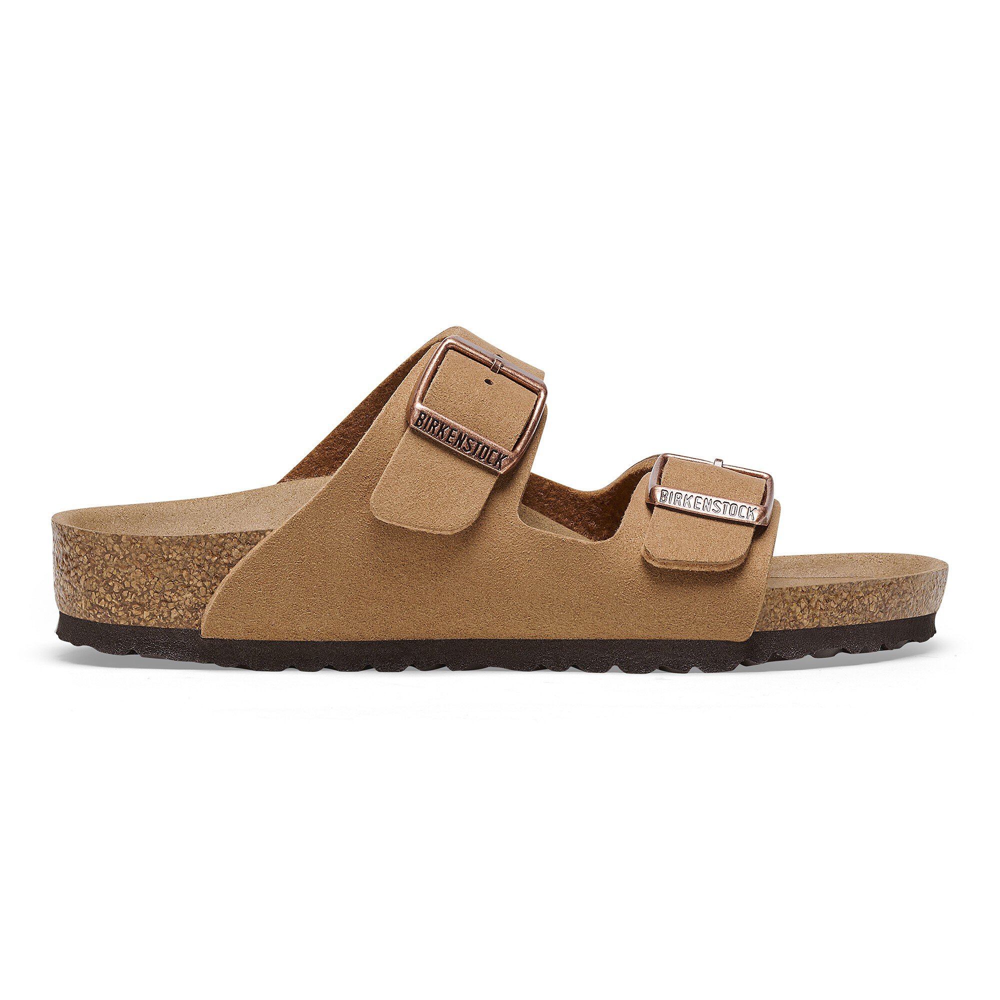 The BIRKENSTOCK Arizona is a genuine classic that has been delighting wearers with its timeless design for decades. The two-strap model fits kids’ feet perfectly – even during boisterous play! This popular sandal has been given an update in a new material, with a vegan version now available. It is entirely free of animal products, as verified by independent testing laboratories. The upper is made from a skin-friendly, synthetic material with a velvety feel.