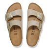 The BIRKENSTOCK Arizona is a genuine classic that has been delighting both men and women for decades. This individually adjustable two-strap sandal has long held cult status. This version boasts a subtle glitter finish which makes the shoes shimmer in the light. The upper is made from especially soft suede which hugs the foot like a second skin.