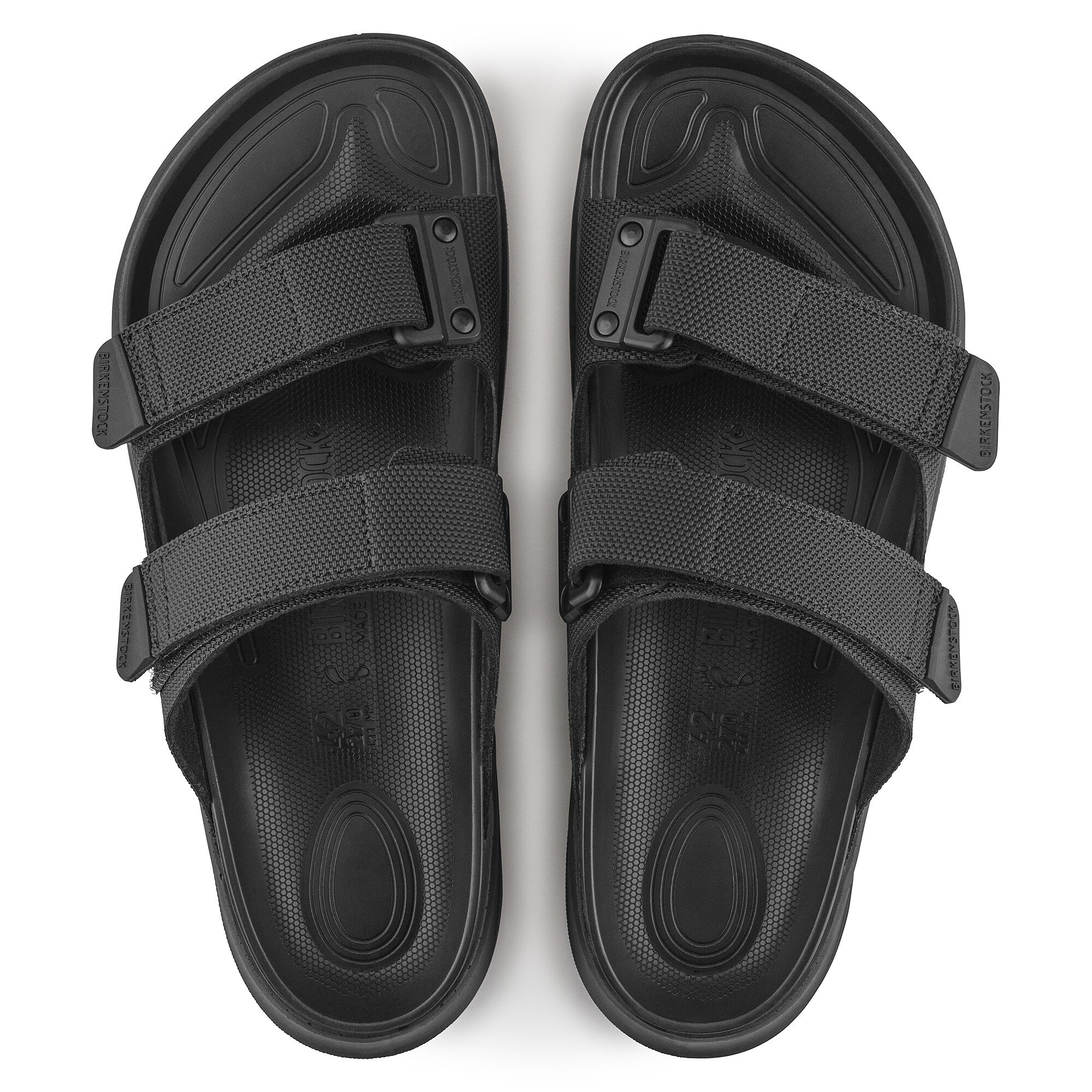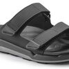 The BIRKENSTOCK Atacama is a variation on the classic Arizona and is the perfect sandal for anyone who is on their feet all day. The pin buckles have been replaced by hook-and-loop fasteners and the heel of the sole has been reinforced. Perfect for all active and adventurous BIRKENSTOCK fans. The polyurethane sole is affixed to the footbed in two layers and therefore offers maximum flexibility, grip and durability. The upper is made from the skin-friendly, hard-wearing synthetic material Birko-Flor® which was reinterpreted with a futuristic look.