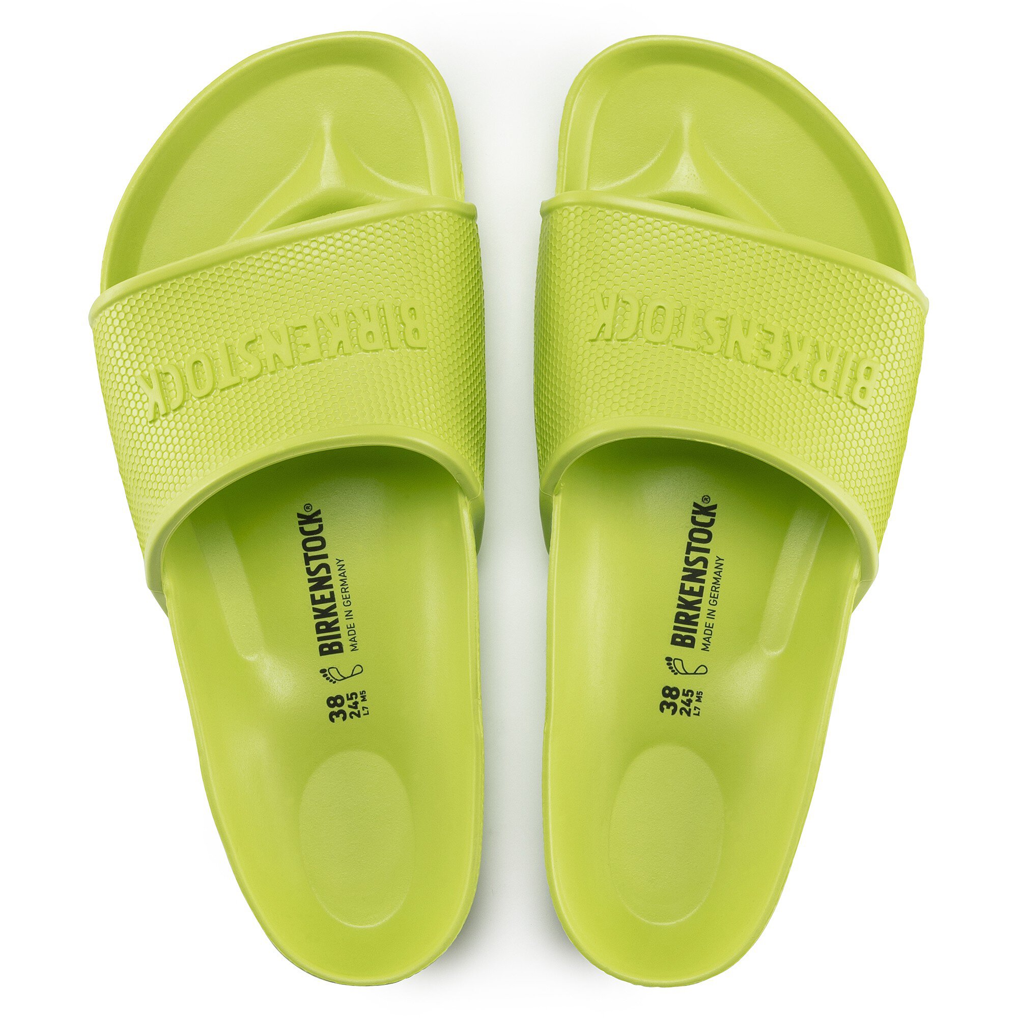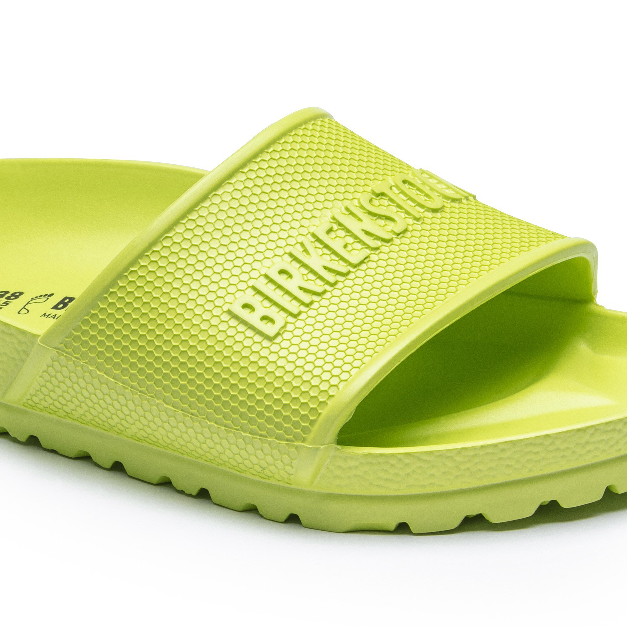 The BIRKENSTOCK Barbados is a sporty mule with a hexagon pattern and logo lettering. It’s perfect for anyone who is looking in particular for function and comfort. Modeled on the cork sandal, this sandal is made from especially light and flexible EVA. This high-quality, odor-neutral synthetic material which has been tested for harmful substances is shock-absorbent, waterproof, and skin-friendly. It’s therefore perfect for wearing at the beach, in the garden, or in wellness and spa areas.