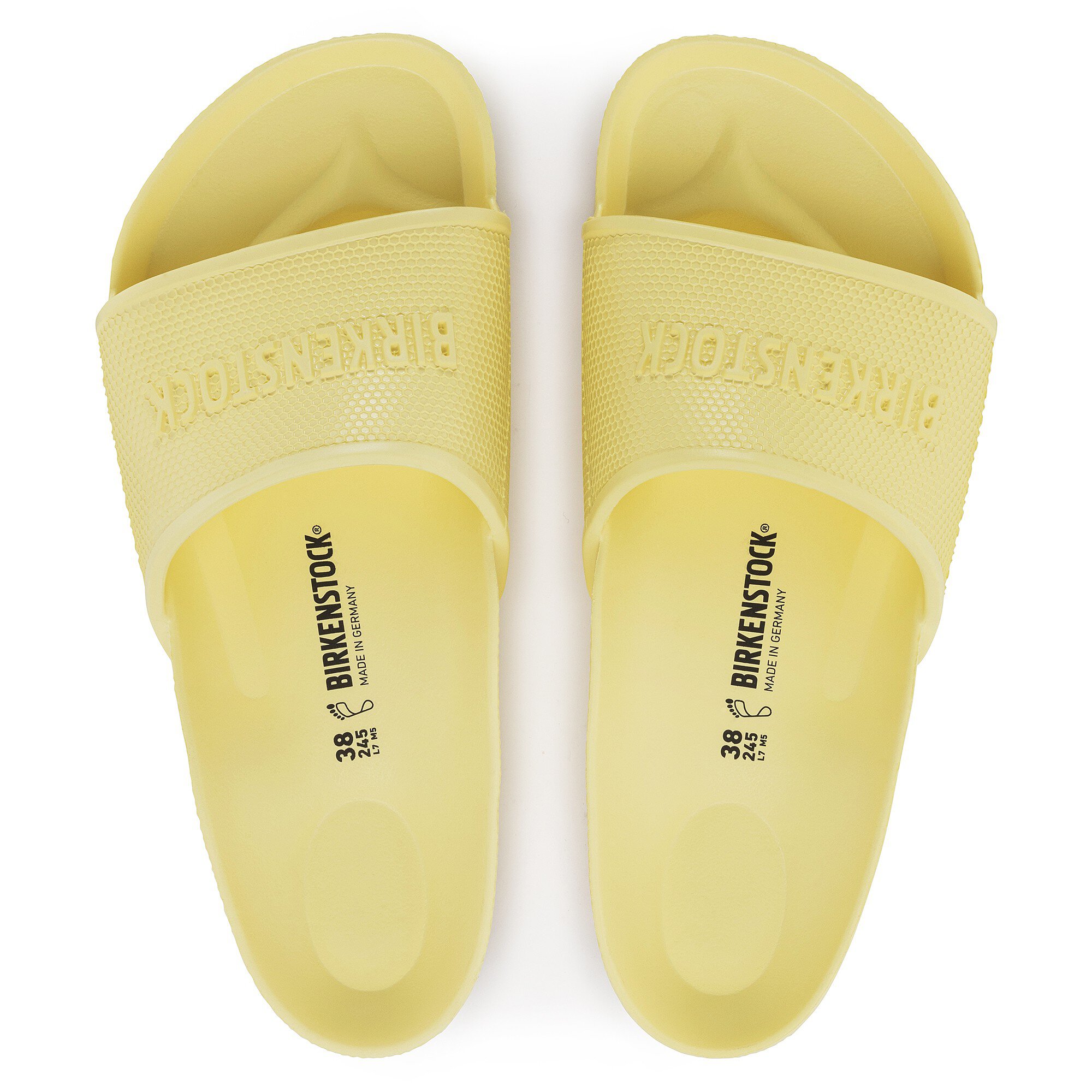 The BIRKENSTOCK Barbados is a sporty mule with a hexagon pattern and logo lettering. It’s perfect for anyone who is looking in particular for function and comfort. Modeled on the cork sandal, this sandal is made from especially light and flexible EVA. This high-quality, odor-neutral synthetic material which has been tested for harmful substances is shock-absorbent, waterproof, and skin-friendly. It’s therefore perfect for wearing at the beach, in the garden, or in wellness and spa areas.
