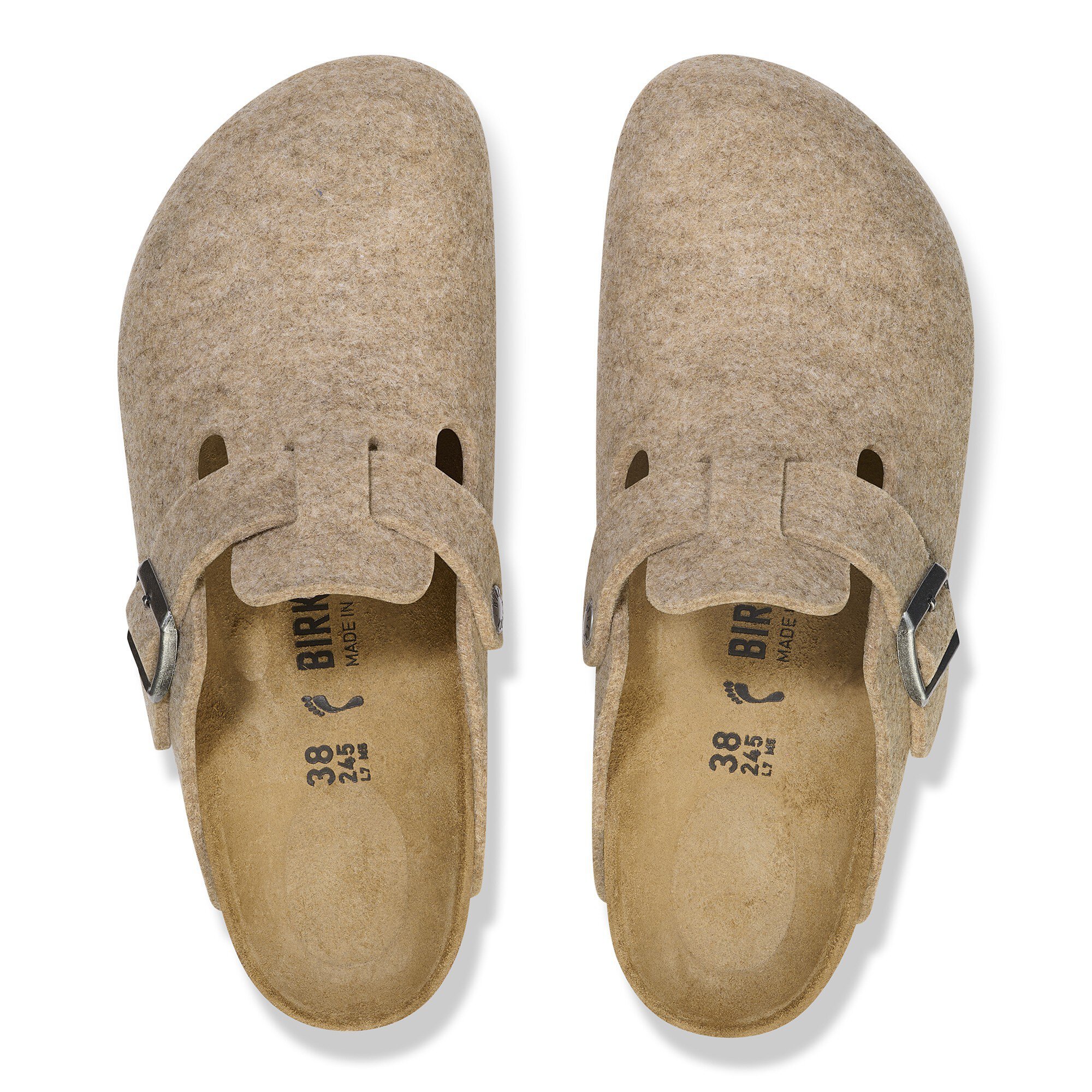 This version of the Boston clog, a classic BIRKENSTOCK model, comes with a shaft in soft, high-quality woolen felt. The clog can be adapted to all feet thanks to a strap on the upper edge of the shaft and a sturdy metal buckle.