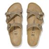 The BIRKENSTOCK Franca is a jaunty sandal with slim cross-over straps. The impressive combination of design and wearability will see fashion-conscious women through the day with elegance and comfort. The upper is made from extra thick, oiled nubuck leather and features an open-selvage finish.