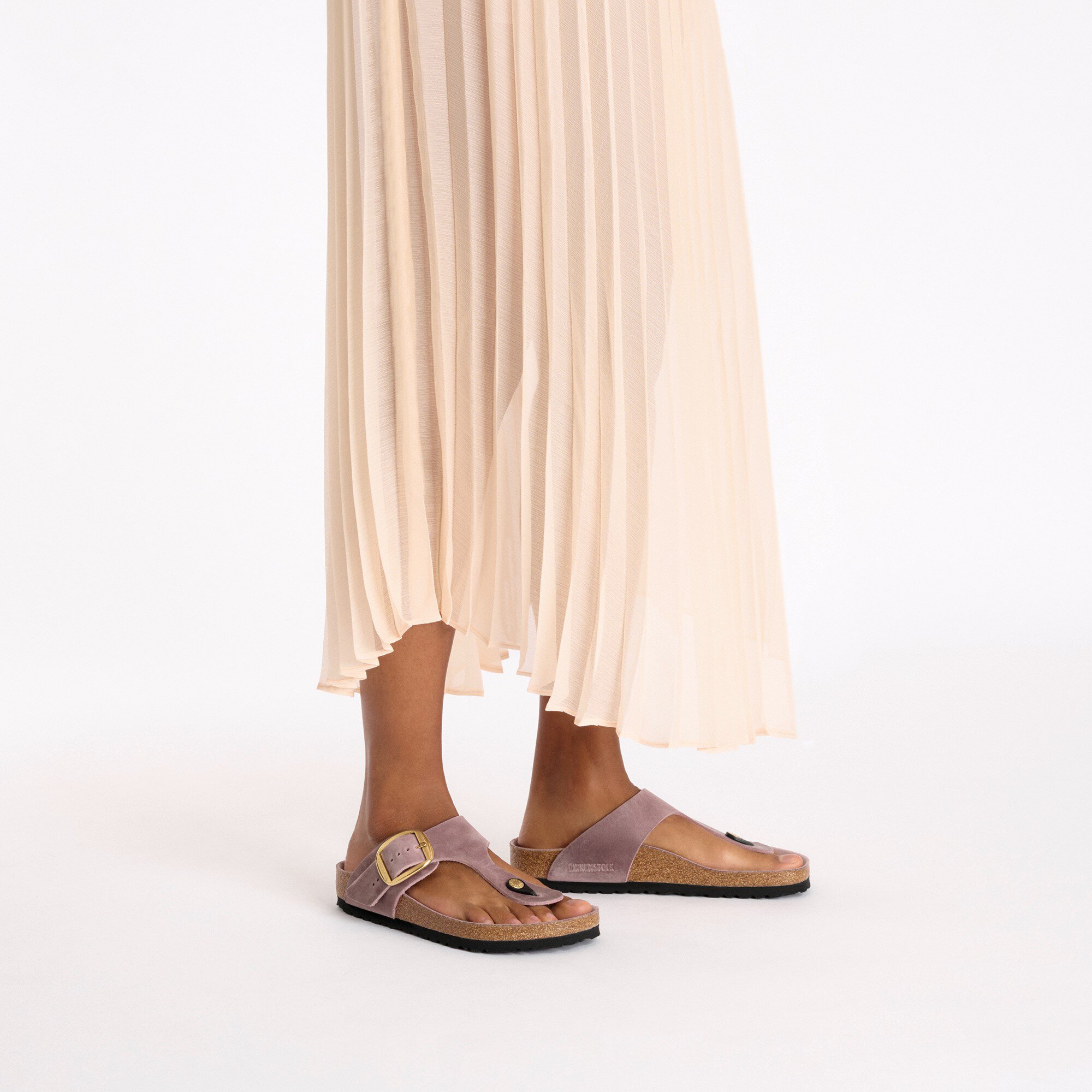 The BIRKENSTOCK Gizeh is a genuine classic that combines optimum grip with minimalist, fashionable design. The Big Buckle version features a large, elegant pin buckle – a fantastic, striking eye-catcher on this otherwise understated sandal. The lining of the semi-exquisite footbed is covered with soft smooth leather and matches the shoe in color. The upper is made from extra thick, smooth leather and features an open-selvage finish.