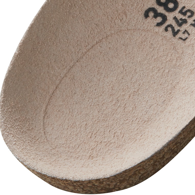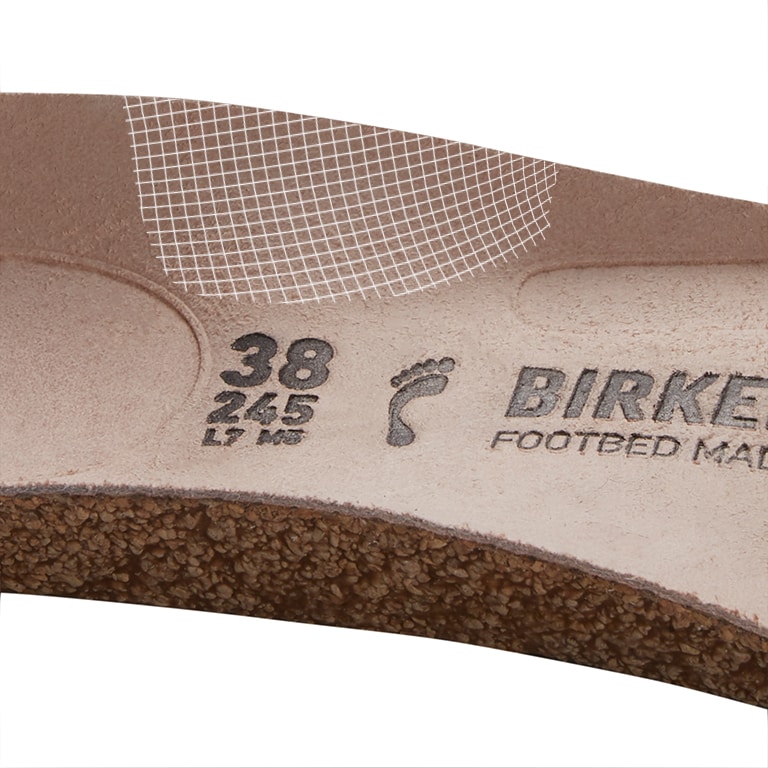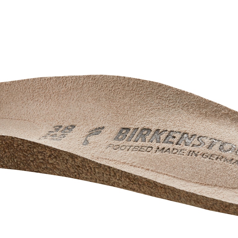 Natural leather can be recognized by its untreated surface. BIRKENSTOCK purposely does not treat surface grains and other characteristic features. BIRKENSTOCK uses sturdy leather with a thickness of 2.8 to 3.2 millimeters as upper material.