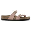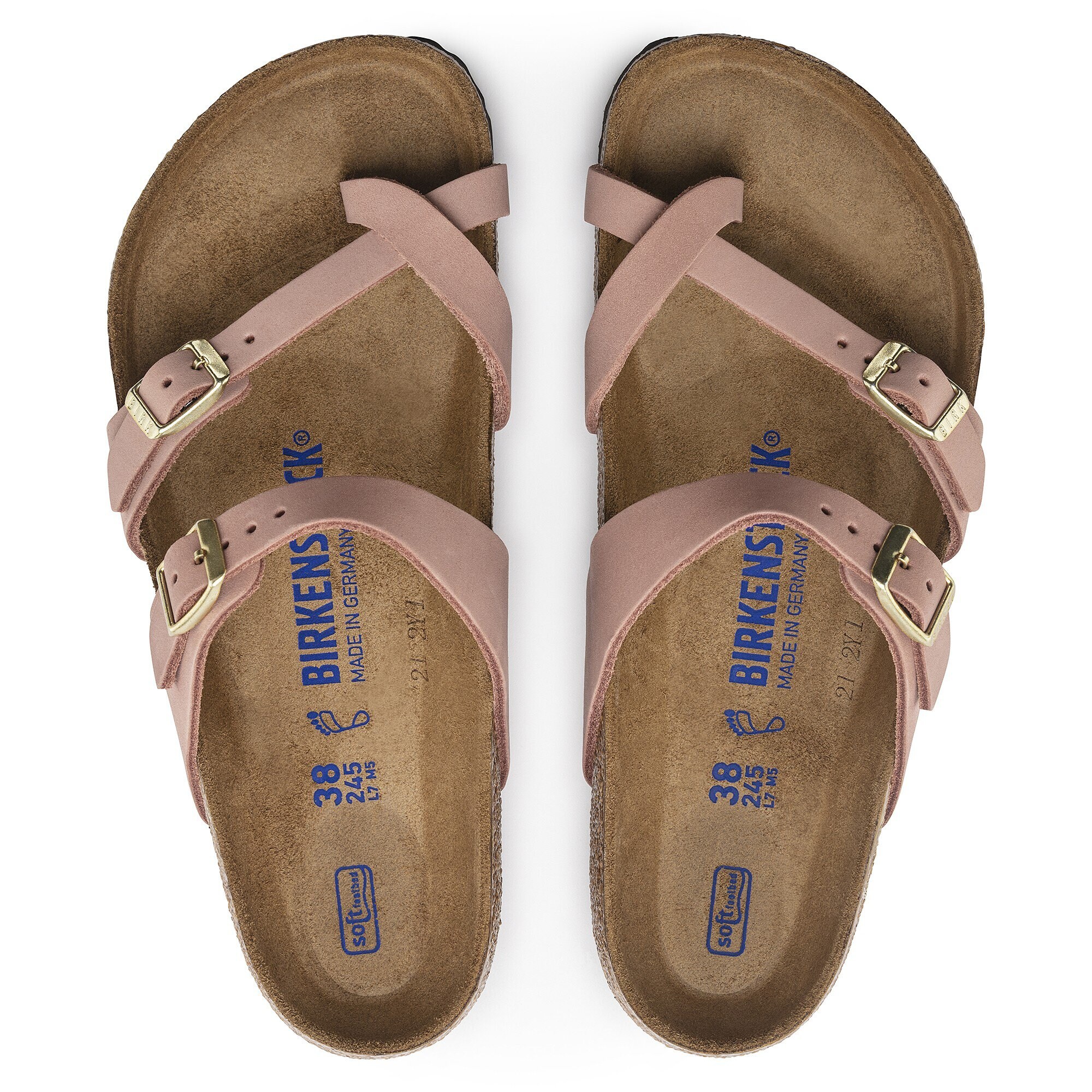 Jaunty and modern! The BIRKENSTOCK Mayari thong sandal stands out with its flowing look and brings together design and comfort. With its additional foam layer, the soft footbed offers extra comfort and pampers feet – all day long. The upper is made from high-quality nubuck leather that boasts a natural, rustic appearance.