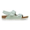Maximum grip, stability, and a perfect fit! The BIRKENSTOCK Milano offers all of this thanks to its compact design with an ankle strap – even during boisterous play. The upper is made from smooth fabric.