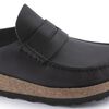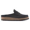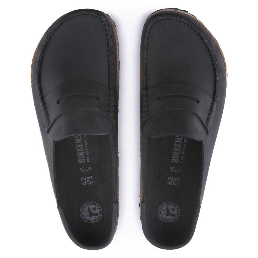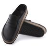 The BIRKENSTOCK Naples is the men’s version of the popular semi-open Buckley clog. The moccasin style with striking stitching lends this sandal a unique and masculine appearance. Thanks to its two components, the sole promotes stability and comfort. It comprises a cushioning midsole made from EVA and an outsole made from genuine rubber. The upper is made from extra thick, oiled nubuck leather with an open-selvage finish.