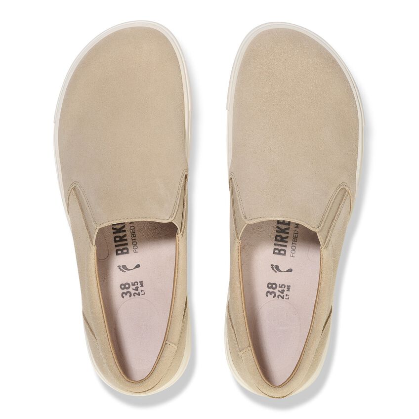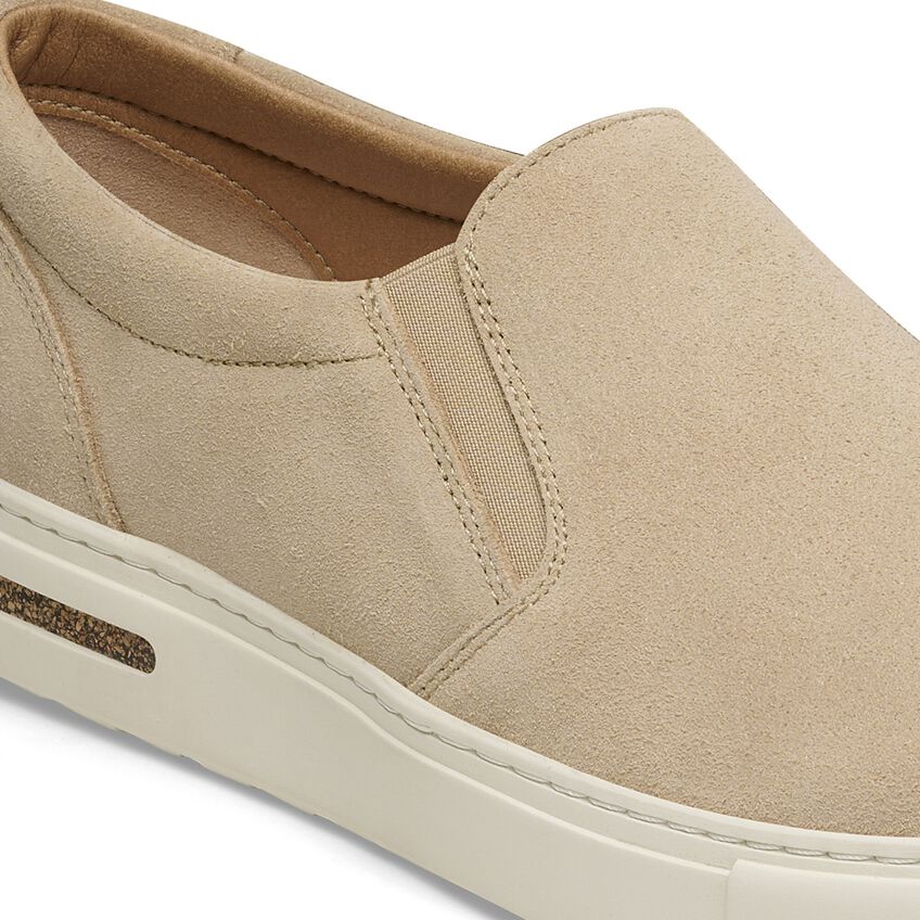 Just slip in! The BIRKENSTOCK Oswego is a handy slip-on shoe that will delight both men and women alike. The casual low shoe features elastic inserts which make it easy to put it on and take it off in no time. The flexible rubber sole with a shock-absorbing cork-PU intermediate layer and the padding at the edge of the shaft result in even more comfort. The upper is made from especially soft suede which hugs the foot like a second skin.