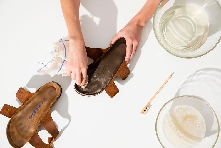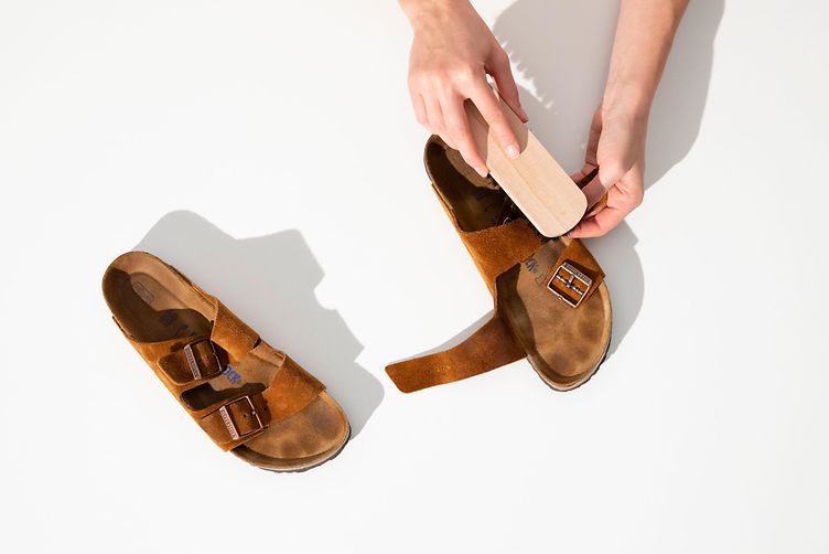 Step 2: the sandals should be dried completely after 24 hours. You can then brush the footbed with a leather brush and close the straps.