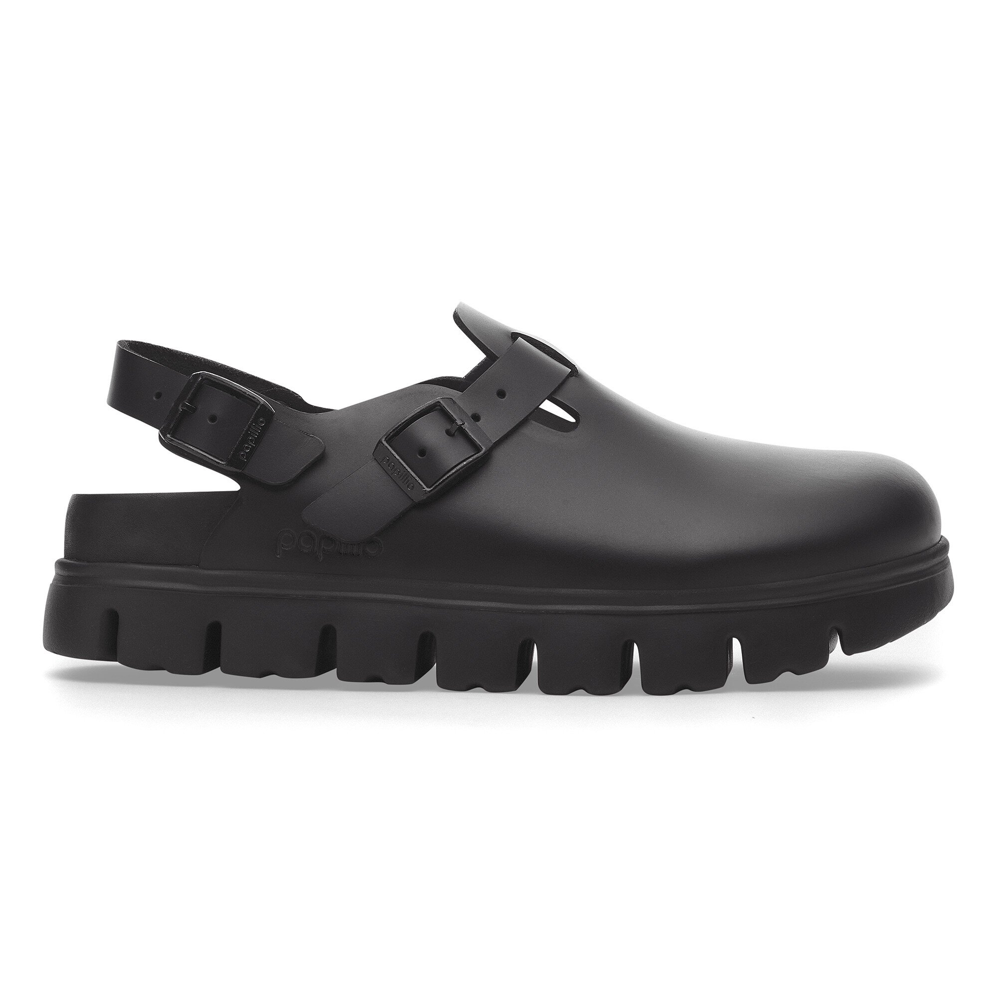 The BIRKENSTOCK Tokio clog is a variation of the classic Boston. The model is characterized by its ankle strap and can easily be worn any time of the year. Here, Papillio presents the clog with a stylish platform sole with extra deep tread lines. The bevel results in maximum walking comfort. The exquisite footbed is fully lined with soft, smooth leather, making it exceptionally comfortable. The upper is made from high-quality, soft natural leather.